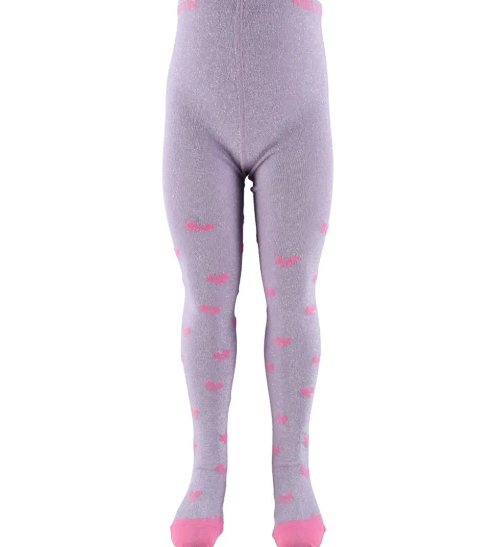 Søde Melton strømpebukser i en lys, lilla nuance med glimmer og har et fint sløjfeprint.