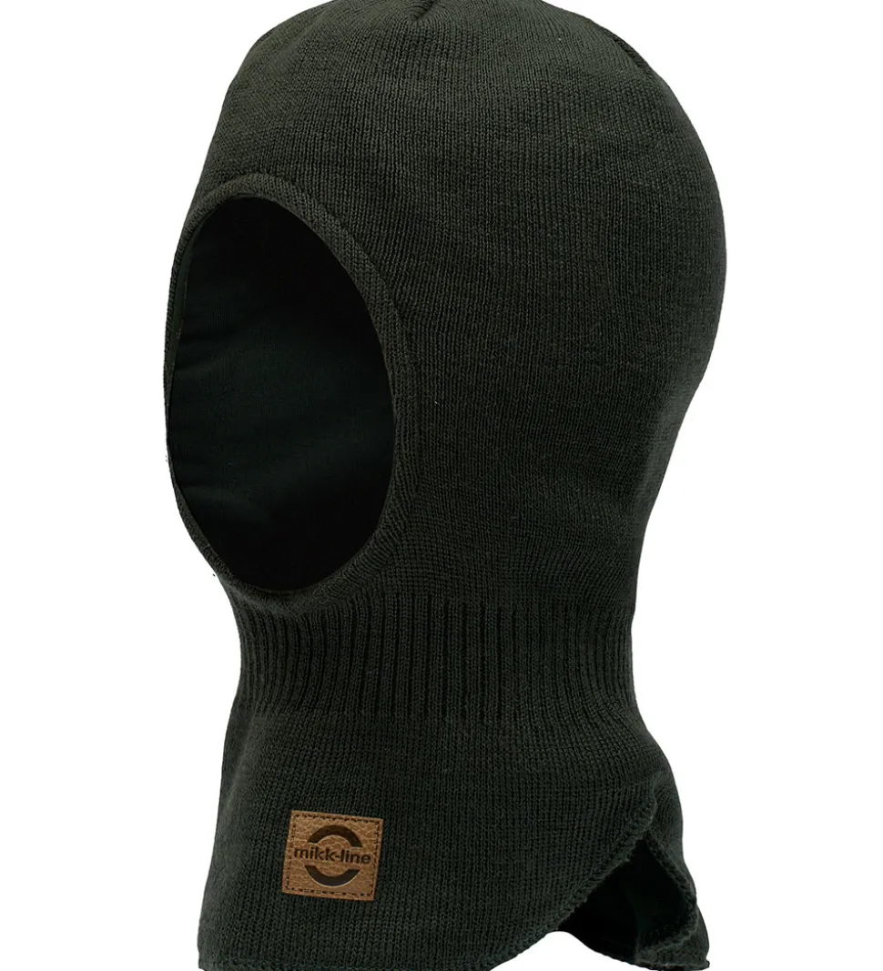 Mikk-Line elefanthuen har en rund hovedform med rib omkring halsen og en praktisk split-effekt i bunden. I siderne er der ekstra forstærkninger, som beskytter ørerne mod kold vind. Elefanthuen er udvendigt strikket i en blød blanding af merinould og akryl og har et glatvævet bomuldsfor.