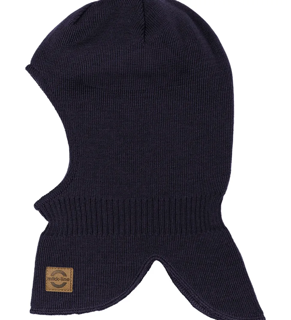 Mikk-Line elefanthuen har en rund hovedform med rib omkring halsen og en praktisk split-effekt i bunden. I siderne er der ekstra forstærkninger, som beskytter ørerne mod kold vind. Elefanthuen er udvendigt strikket i en blød blanding af merinould og akryl og har et glatvævet bomuldsfor.