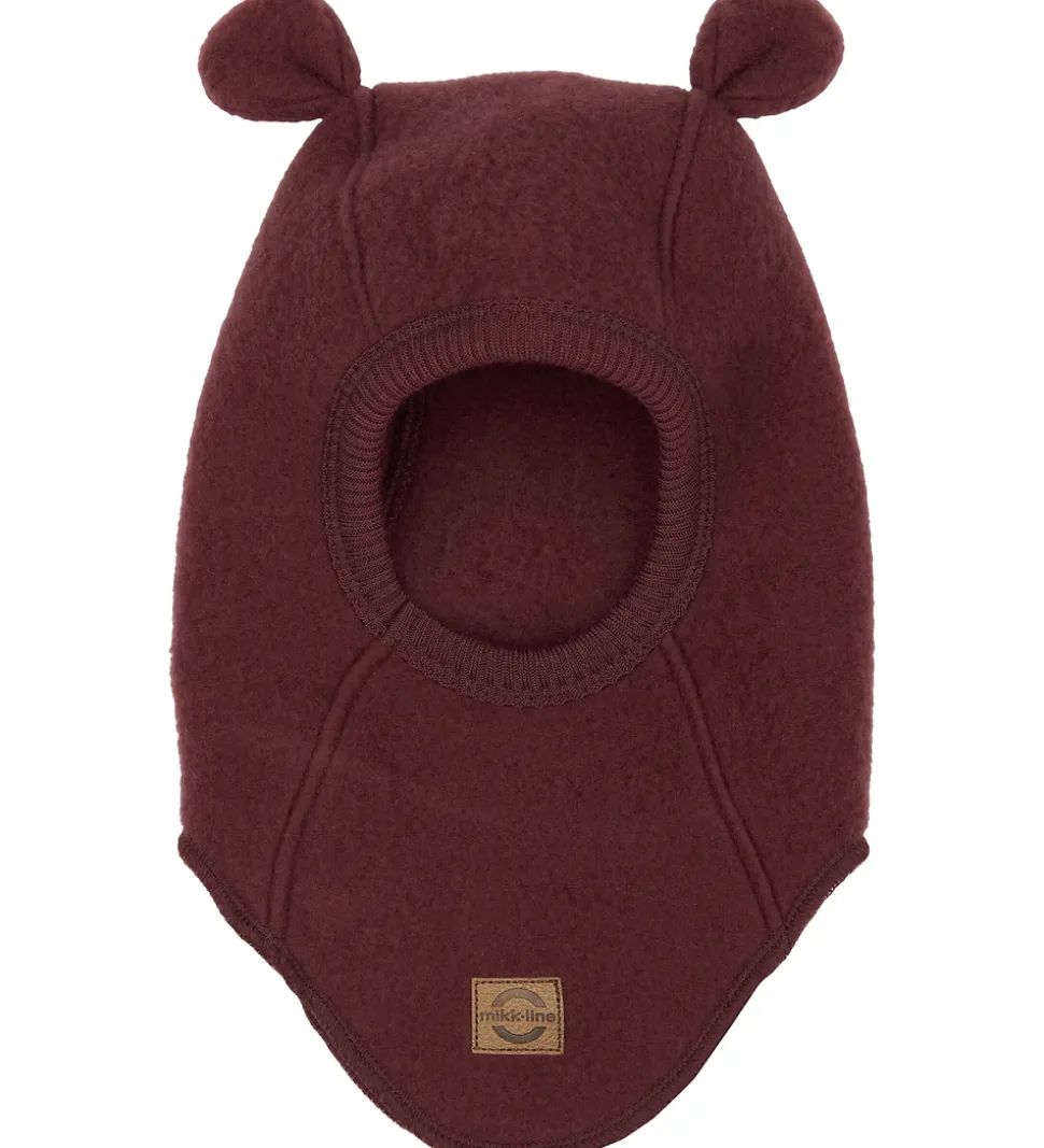 Skøn Mikk-Line elefanthue i mørkerødt filtet merinould og med søde ører på toppen.