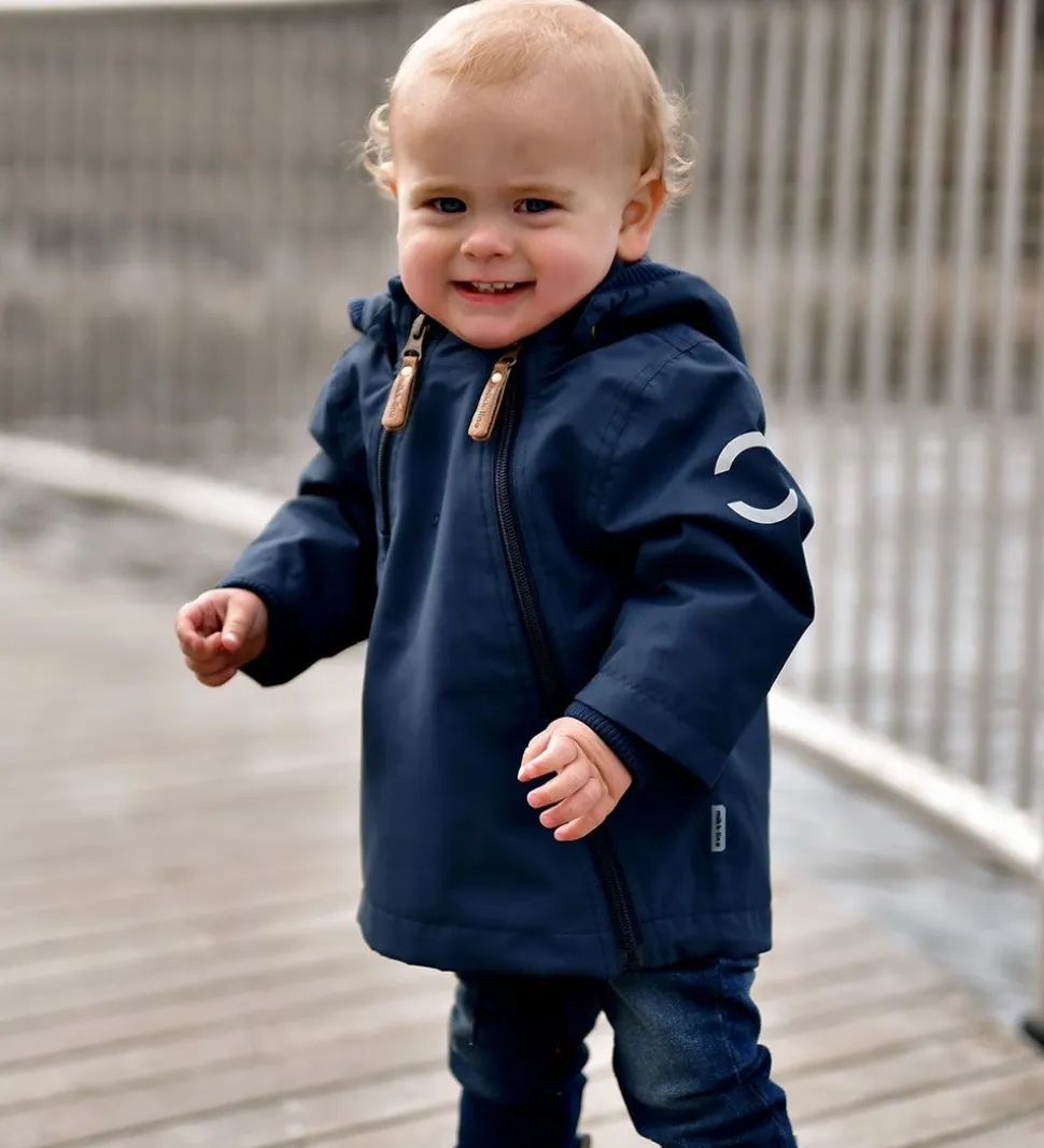 Mikk-Line sommerjakken har en aftagelig hætte, der sidder fast med trykknapper omkring den ribforede halskrave. Hætten har en spids hovedform og en blød ribkant i ansigtsåbningen. Sommerjakkens lange ærmer er med praktiske vindfang og brede ribkanter i åbningerne.