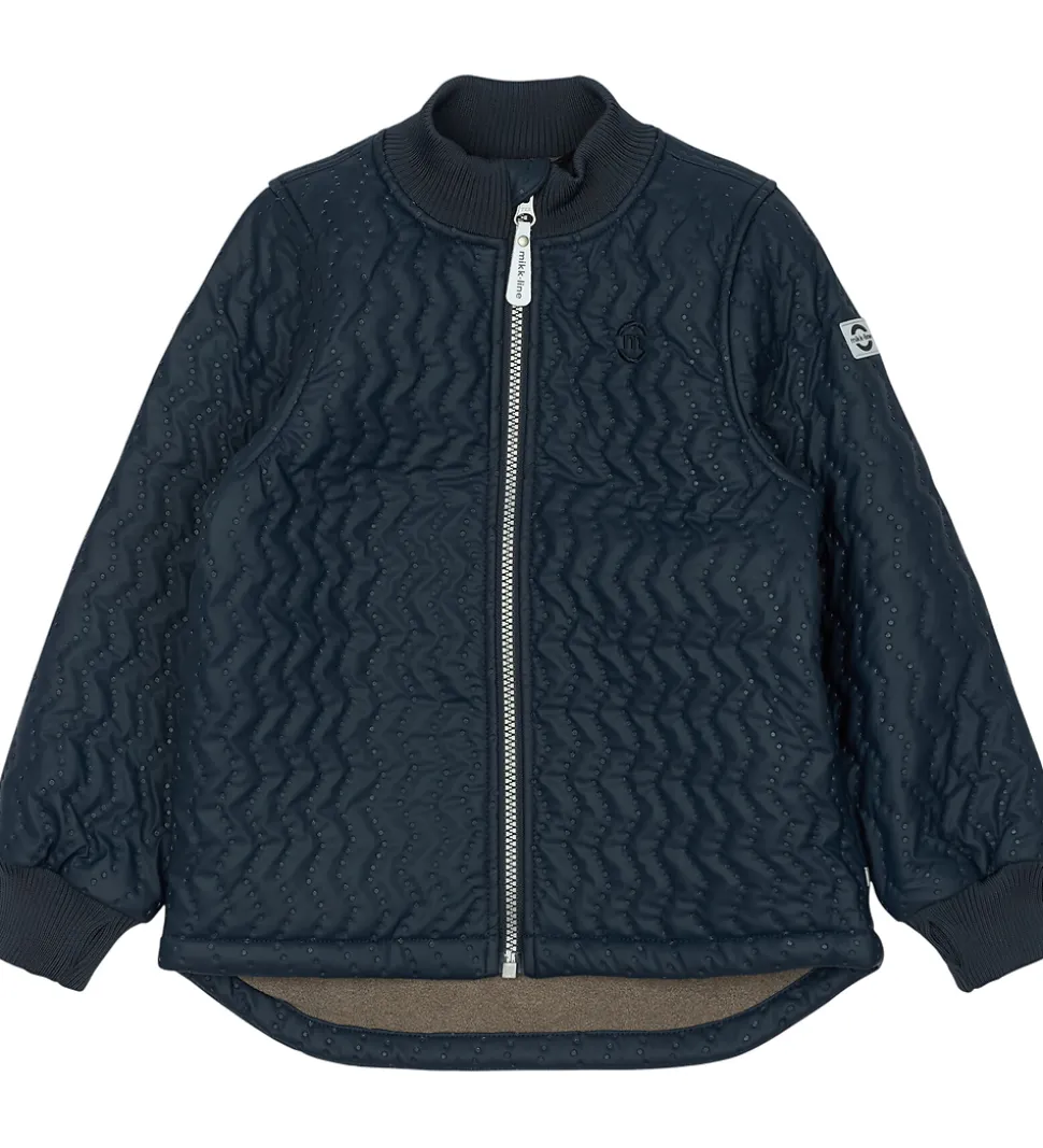 Mikk-Line termojakken har en høj ribkrave, og ærmerne har brede ribkanter med et lille hul til tommelfingeren. Termojakken åbnes med en lynlås med hagebeskytter og et praktisk refleksvedhæng.