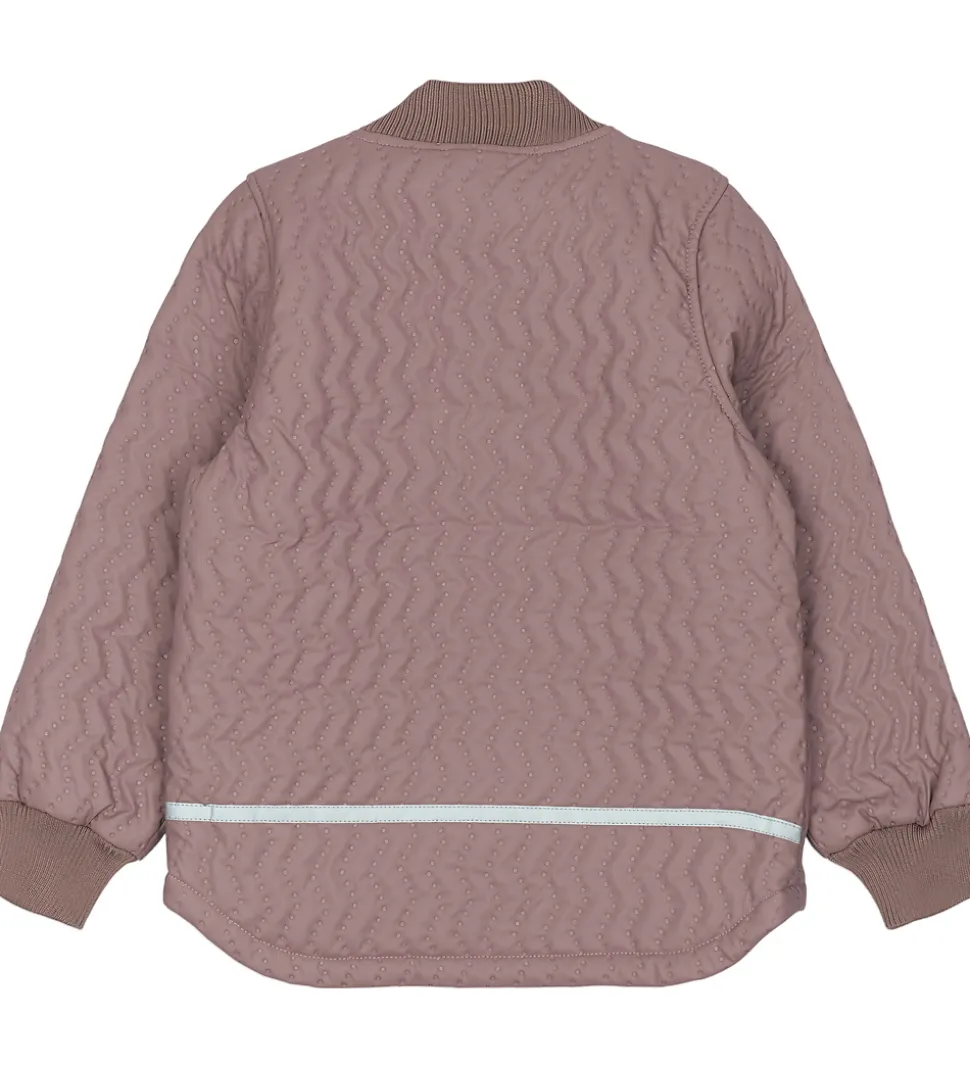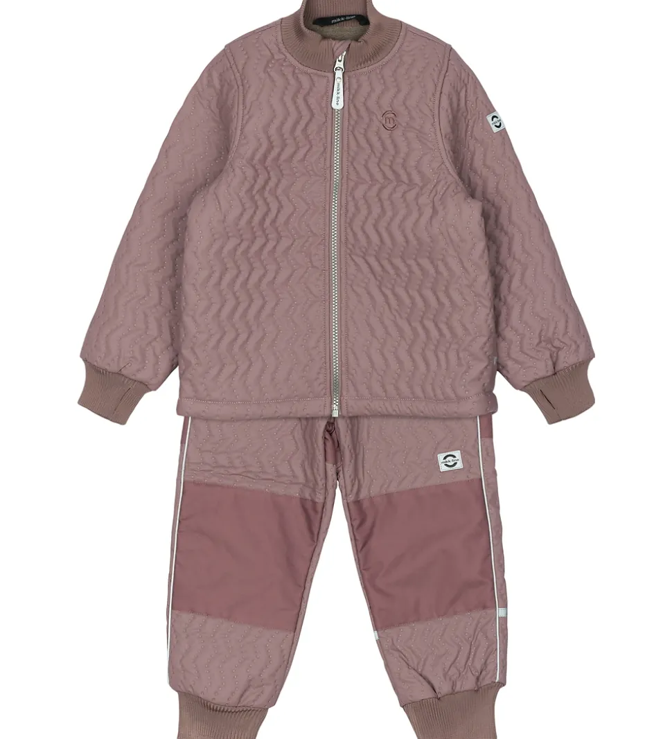 Flot Mikk-Line termotøj bestående af en termojakke og et par termobukser i støvet lilla og med en quiltet struktur.