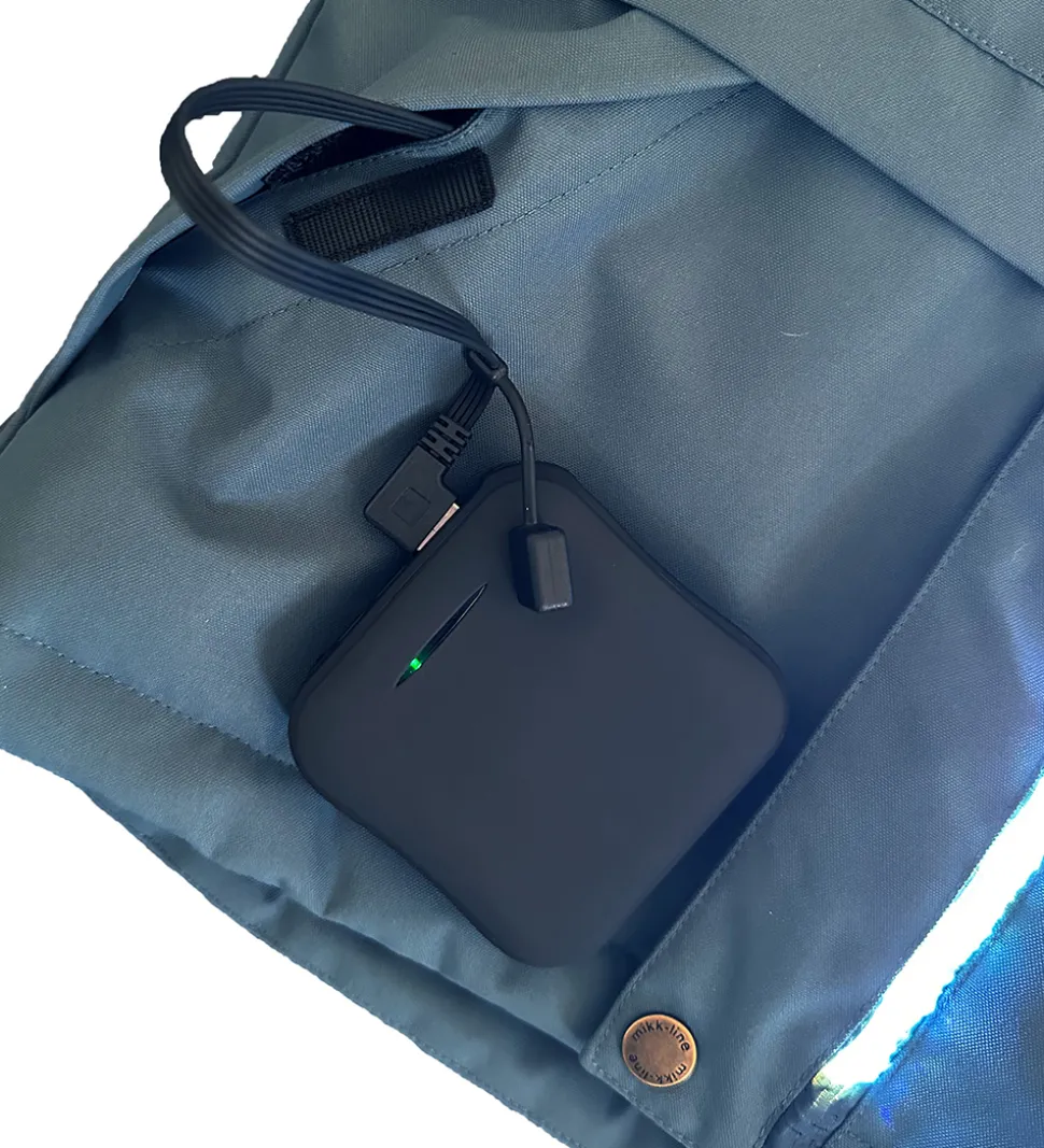 Lysfunktion: vinterjakken er udstyret med en indbygget lysfunktion, der gør barnet ekstra synligt på de mørke dage. Lyssystemet skal tilsluttes en powerbank, som ikke medfølger. Powerbank og ledning er godt gemt væk i en inderlomme, og der medfølger sikringshætte til ledningen, så vinterjakken stadig kan kommes i vaskemaskinen. Lyset tændes og slukkes ved at sluttes til powerbanken.