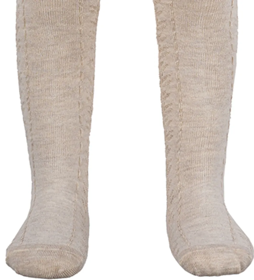 Dejlige MiniPop strømpebukser i en fin off white farve med et enkelt, dekorativ mønster ned langs benene.