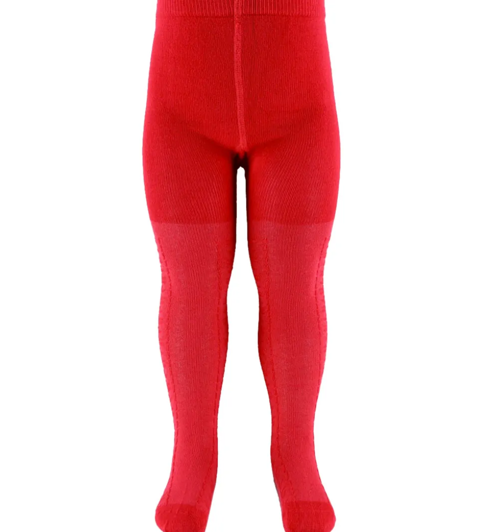 Fine MiniPop strømpebukser i en iøjnefaldende rød farve med et dekorativt hulmønster ned ad buksebenene. Strømpebukserne har en ribbet struktur øverst, mens resten er glatvævet. Den elastiske talje sikrer en god pasform.