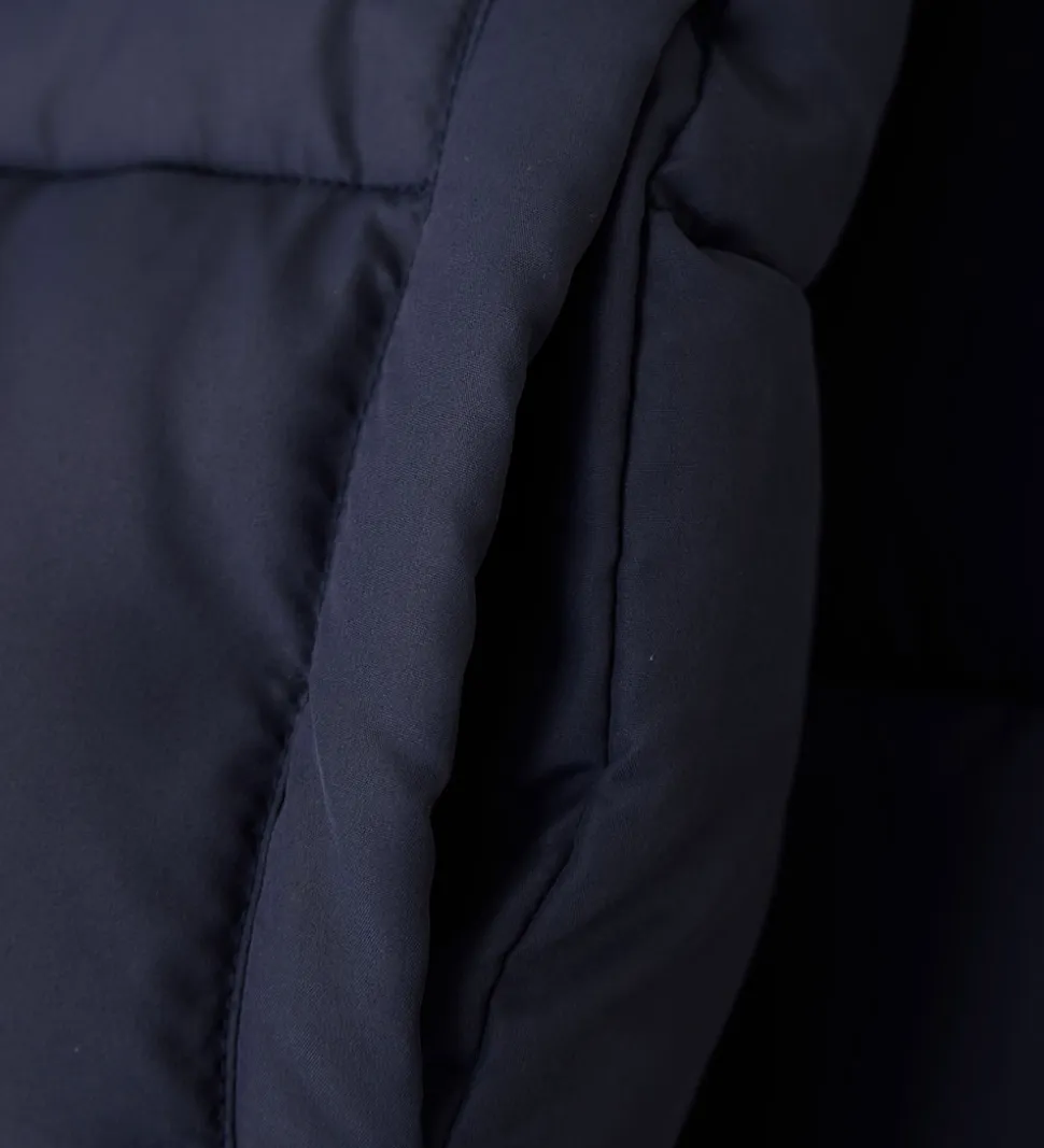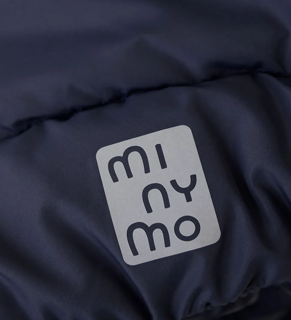 Lækker Minymo dynejakke i ensfarvet navyblå og med velplacerede refleks-logoprint.