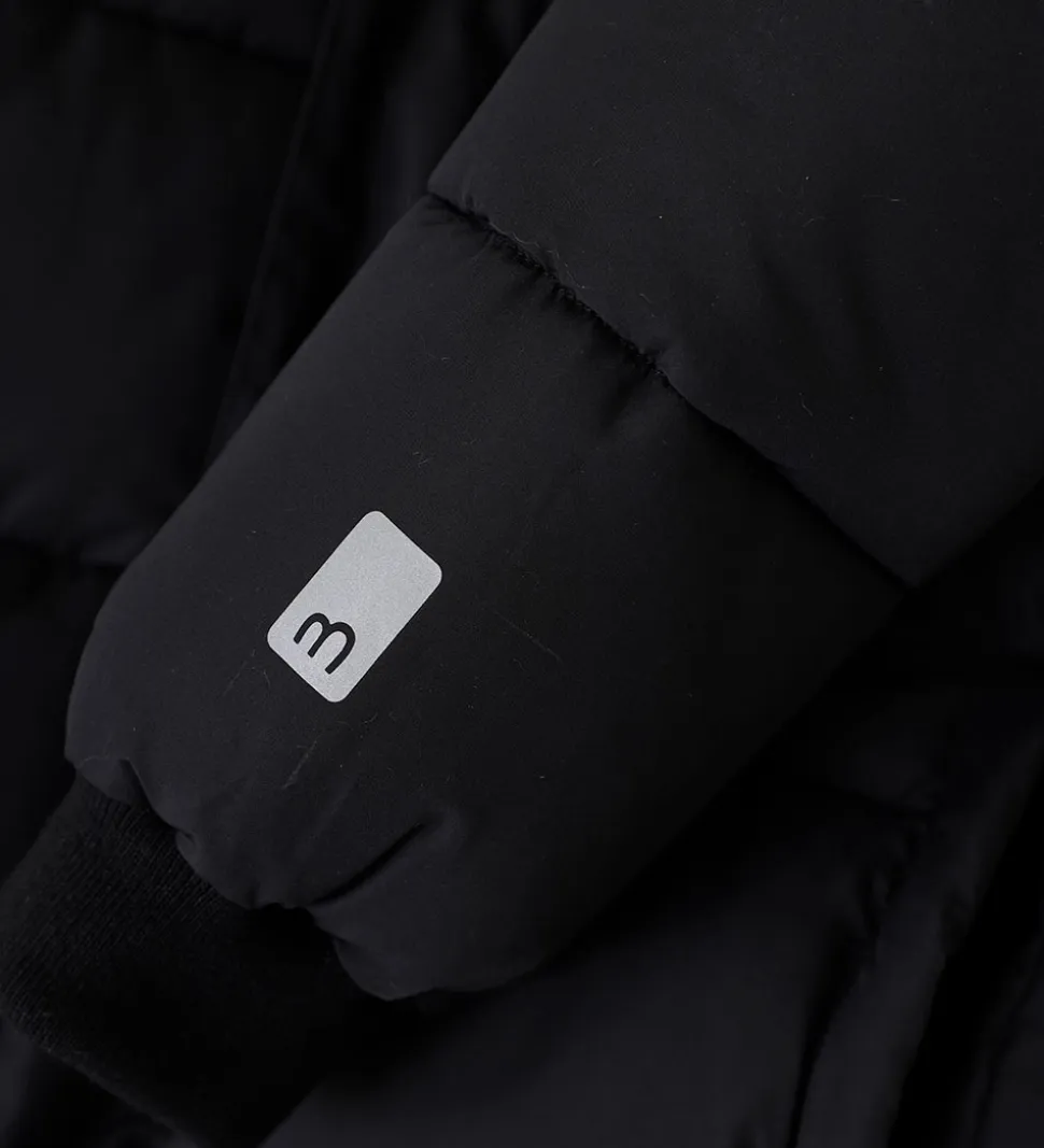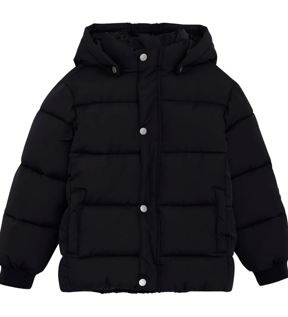 Lækker Minymo dynejakke i ensfarvet sort og med velplacerede refleks-logoprint.