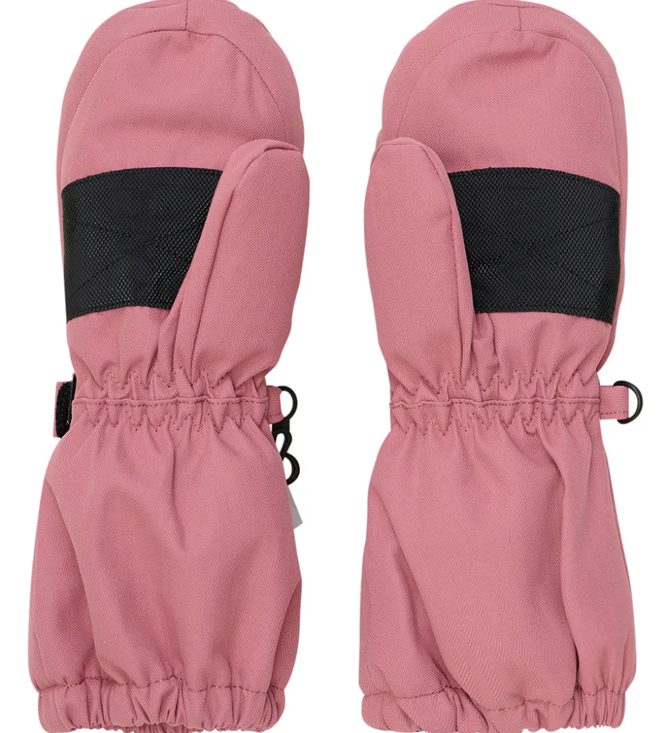 Fine Minymo luffer i varm rosa med et lille reflekslogo øverst. Minymo lufferne har elastik i åbningen, og kan strammes med en velcrorem omkring håndleddet. Lufferne har blødt fleecefor indvendigt.