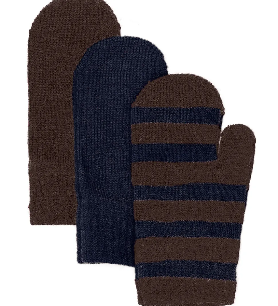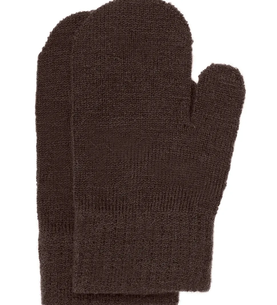 Lufferne har brede, elastiske ribkanter ved håndleddene og er strikket i en blød uldblanding.