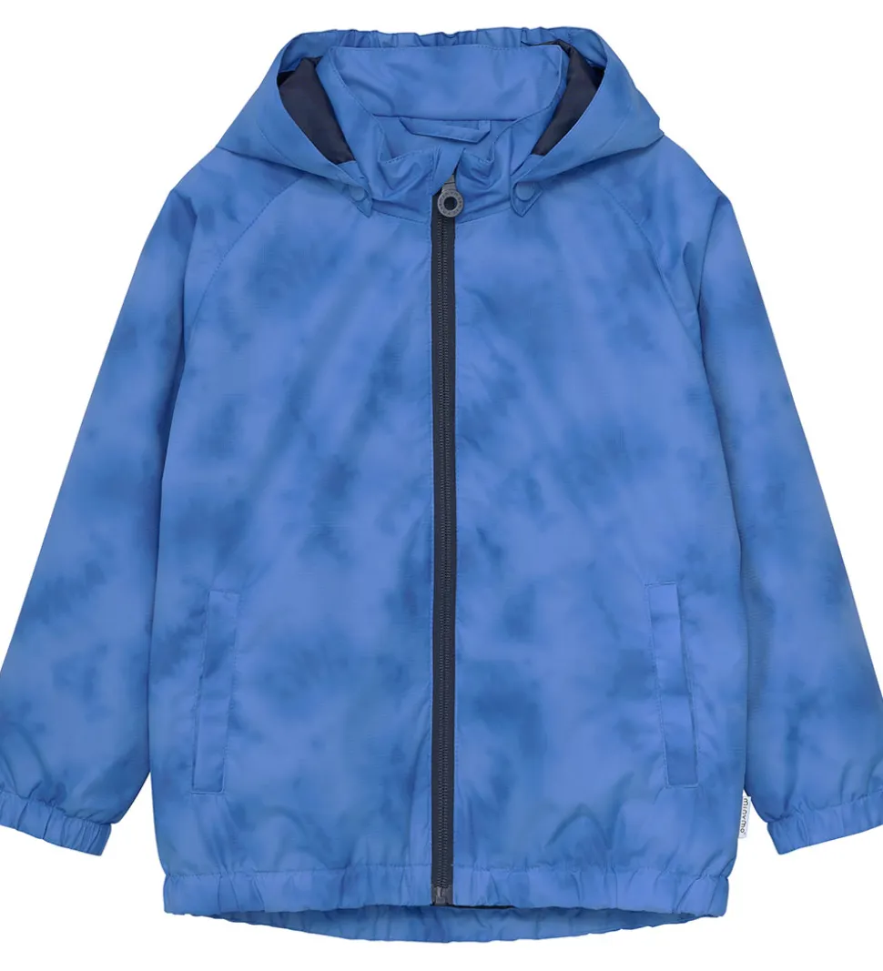 Flot Minymo regnjakke i et mønster med to blå nuancer. Regnjakken er i en lækker PE-kvalitet.