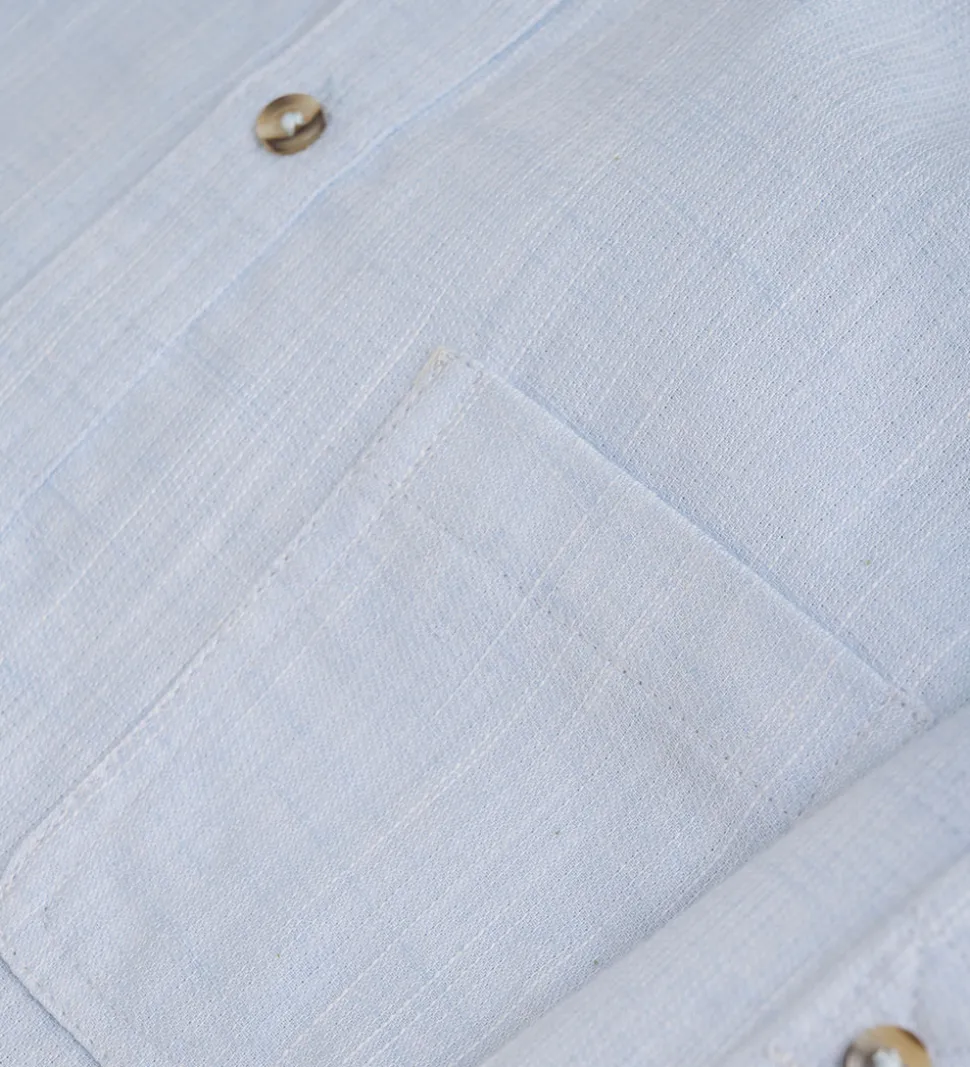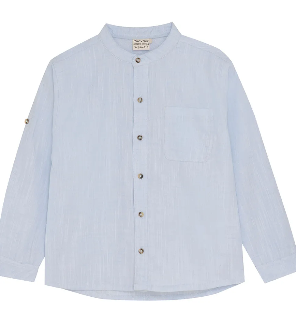 Elegant Minymo skjorte i en lys blå nuance med knaplukning og en praktisk brystlomme. Skjorten har lange ærmer, hvilket gør den ideel til forskellige anledninger. Minymo tilbyder kvalitet og stil i ét produkt.