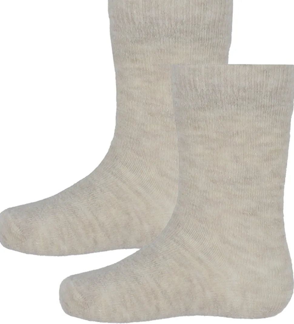 Behagelige Minymo strømper solgt i en 2-pak i beige. Strømperne har et langt skaft og en ribkant øverst, der sikrer god pasform. Minymo strømperne er lavet i et blødt materiale, der giver en dejlig fornemmelse mod huden.