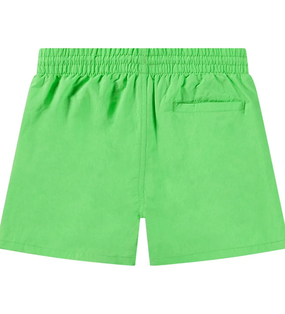Farverige Molo badeshorts i neongrøn med et logo på venstre lår i neongul. Badeshortsene har en god elastik i taljen, som kan justeres med snøre. Bagpå er der en lomme i højre side. Indvendigt er der net med elastik i benåbningerne.