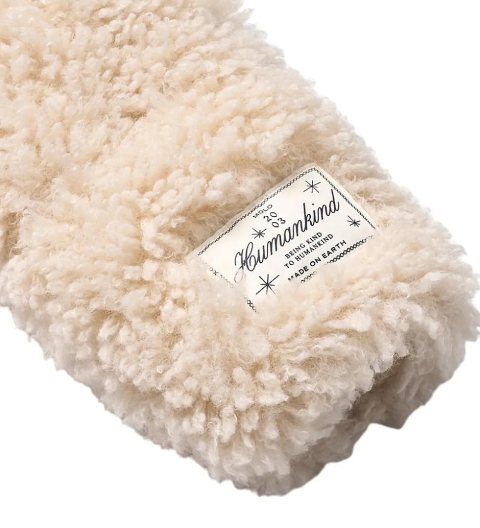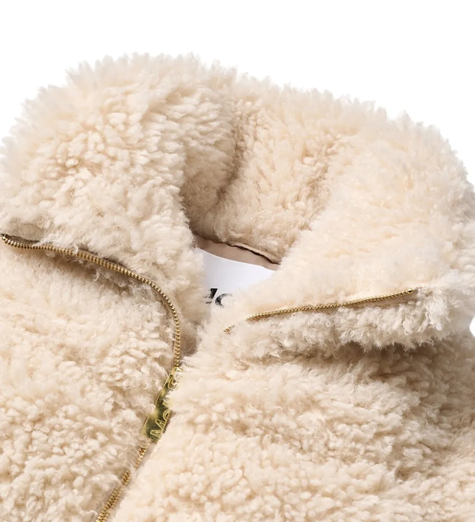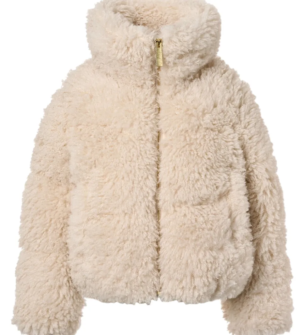 Flot Molo dynejakke i en blød, beige farve af imiteret pels, der giver et indbydende indtryk.