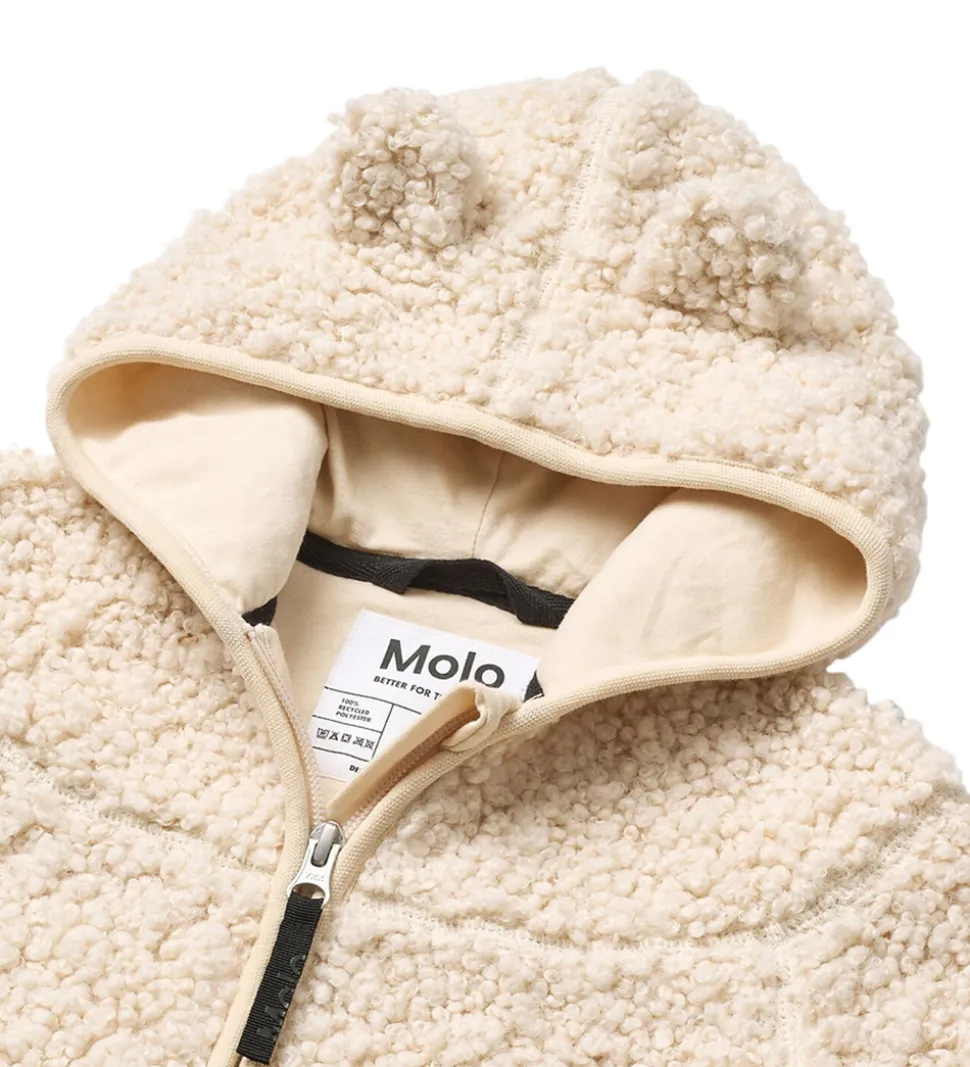 Blød Molo fleecejakke af teddyfleece i en lys beige farve med en pjusket struktur, der giver et stilfuldt udtryk.