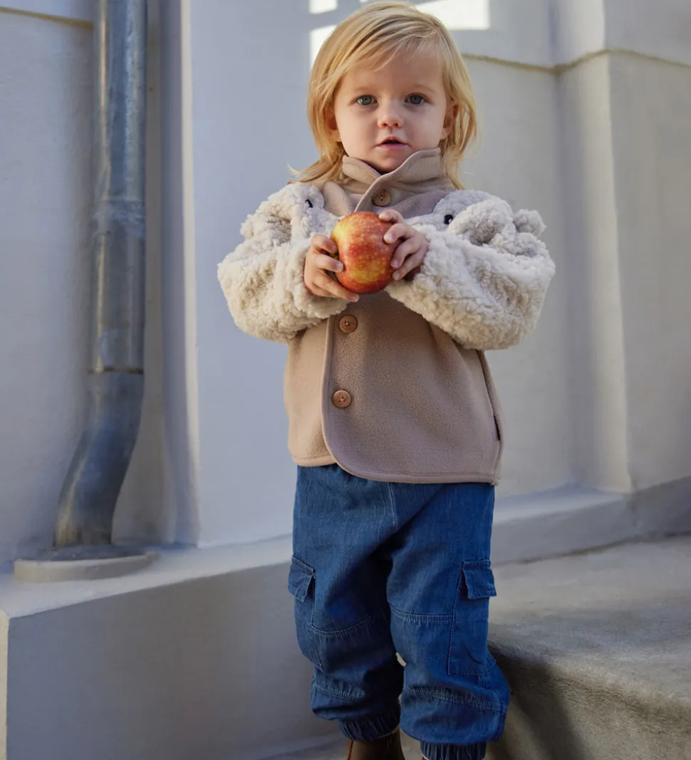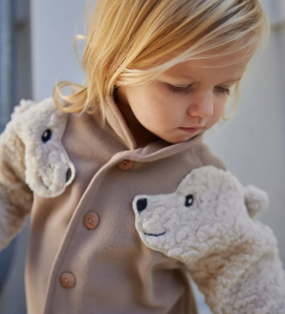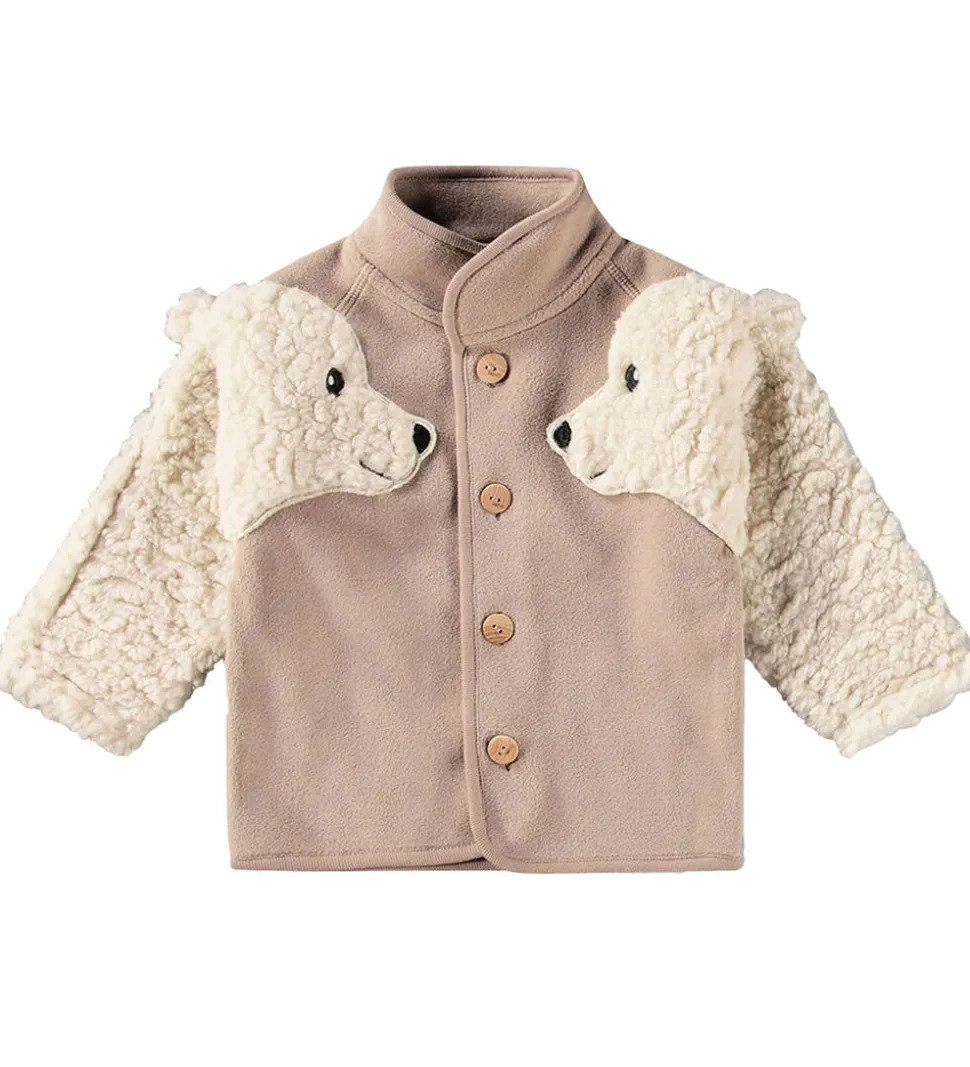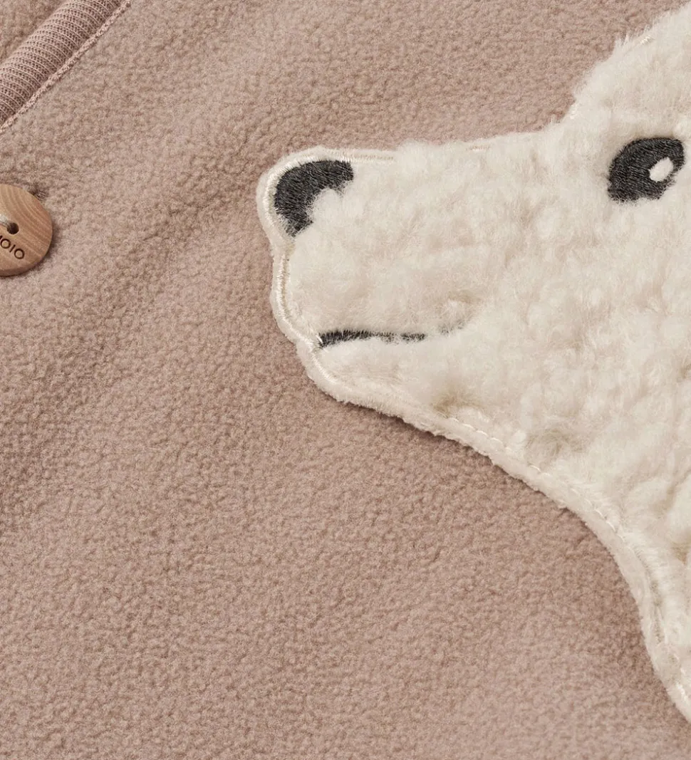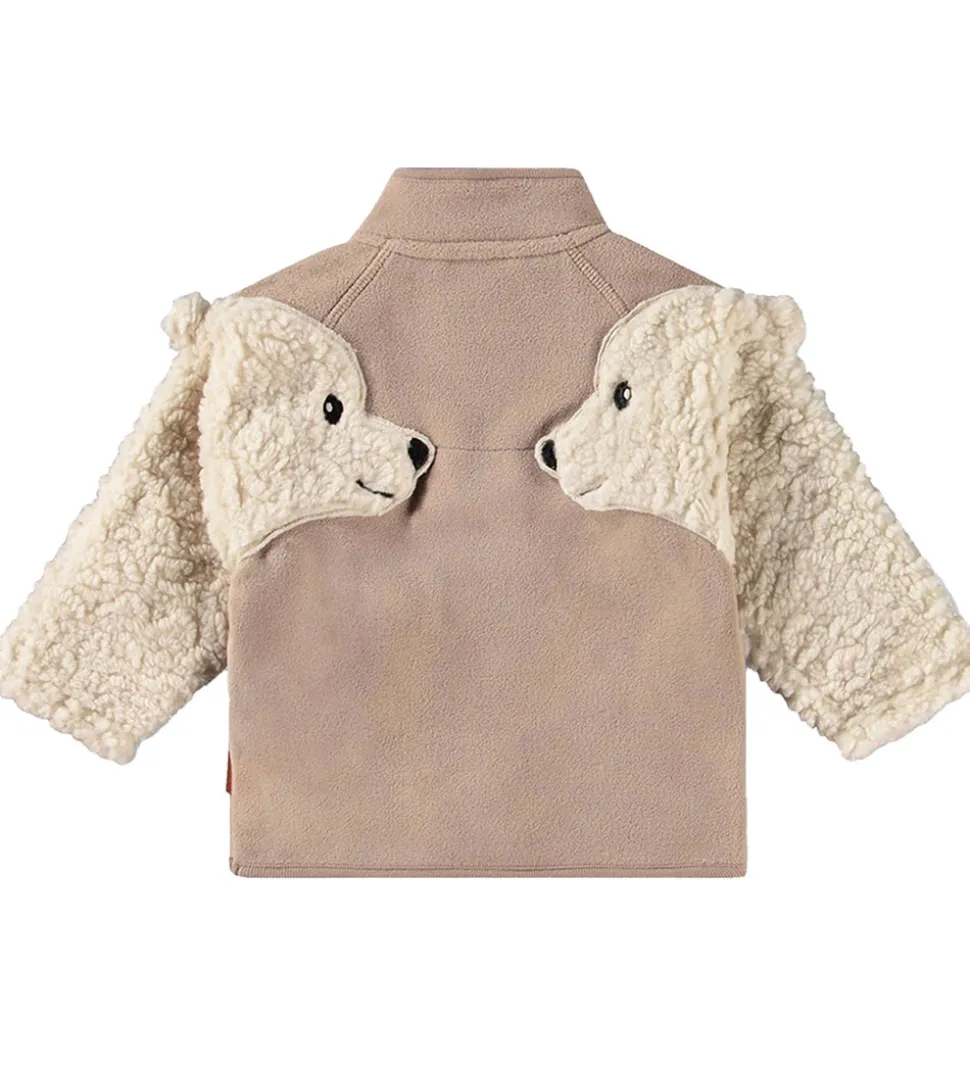 Fed Molo fleecejakke i brun med naturhvid teddyfleece på ærmerne i form af isbjørne.