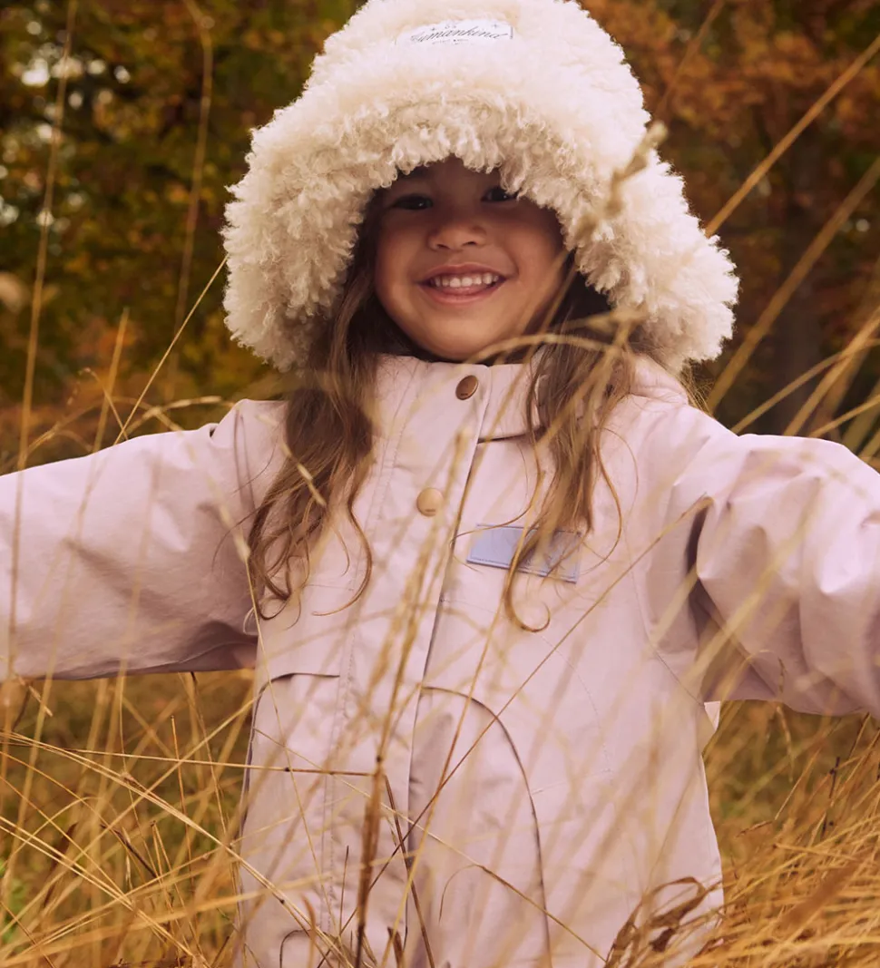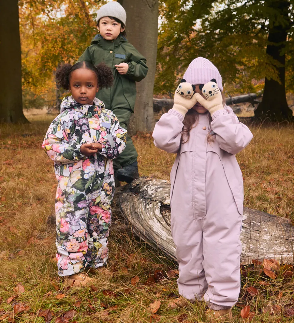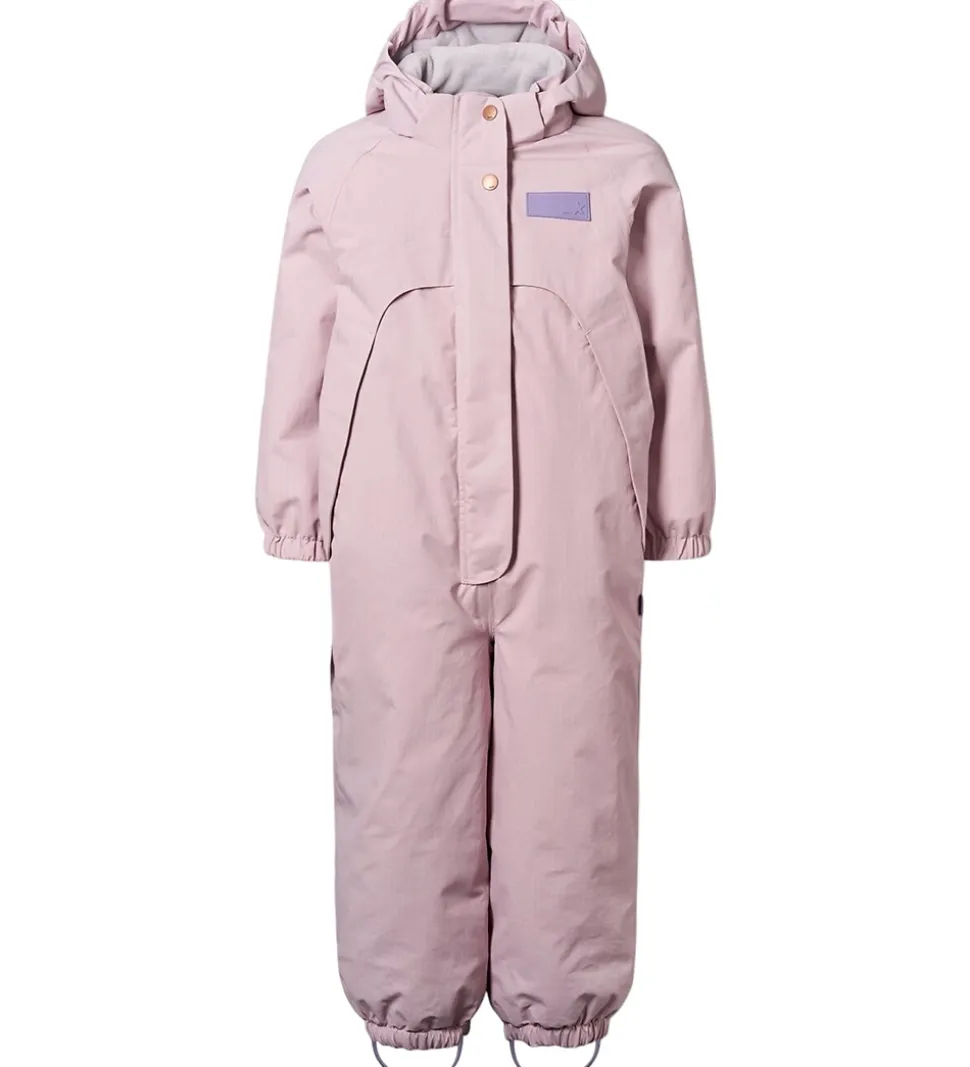 Lækker Molo flyverdragt i en lys, rosa nuance og med en gummiapplikation på venstre bryst. Flyverdragten er udstyret med store stjernereflekser og reflekspipings.