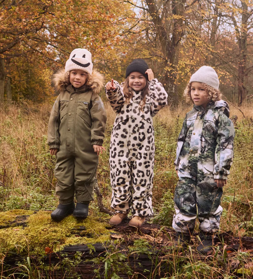 Smart Molo flyverdragt i støvet grøn. Flyverdragten er udstyret med store stjernereflekser og reflekspipings.