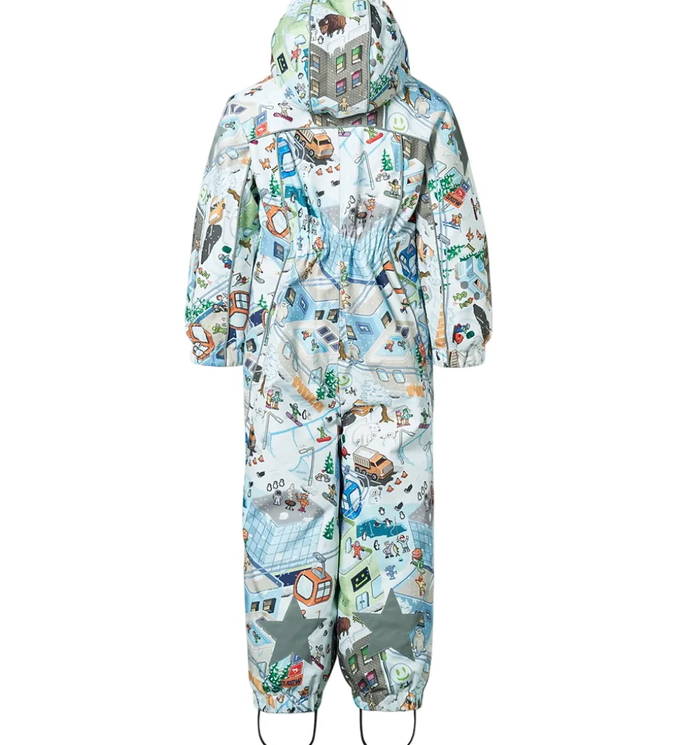 Smart Molo flyverdragt med et alloverprint af pixeleret vinterlandskab. Flyverdragten er udstyret med store stjernereflekser og reflekspipings.