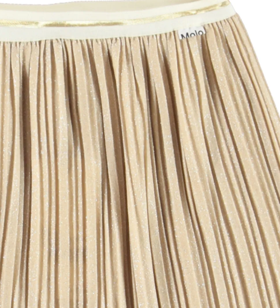 Elegant nederdel fra Molo med fint plissemønster. Denne nederdel tilføjer et stilfuldt touch til enhver garderobe og kan nemt styles til forskellige anledninger. Den bløde elastik i taljen sikrer en komfortabel pasform. Giv dit barn en fashionable mulighed med Molo.