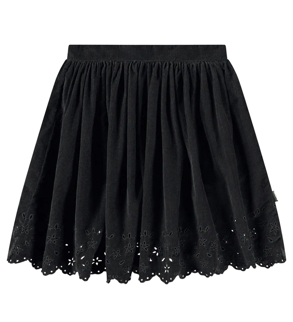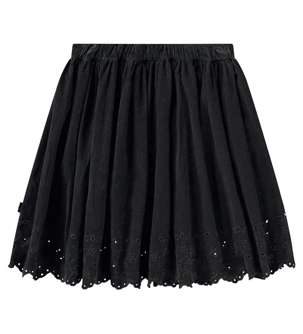 Sød Molo nederdel i sort fløjl med et flot hulmønster for neden.