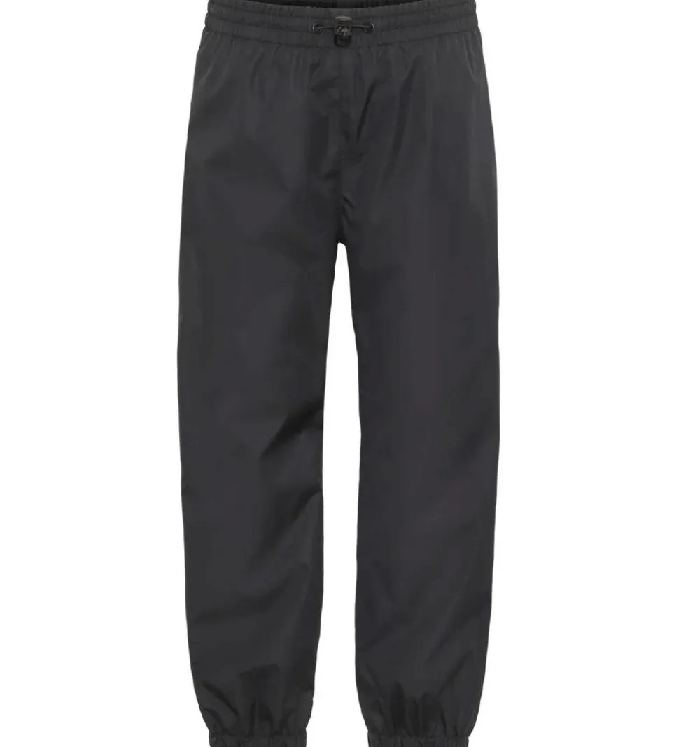 Molo regnbukserne har en bred elastikkant i livet og et justerbart elastikbånd fortil. Bukserne har smalle elastikkanter i benåbningerne og aftagelige, justerbare støvlestropper.