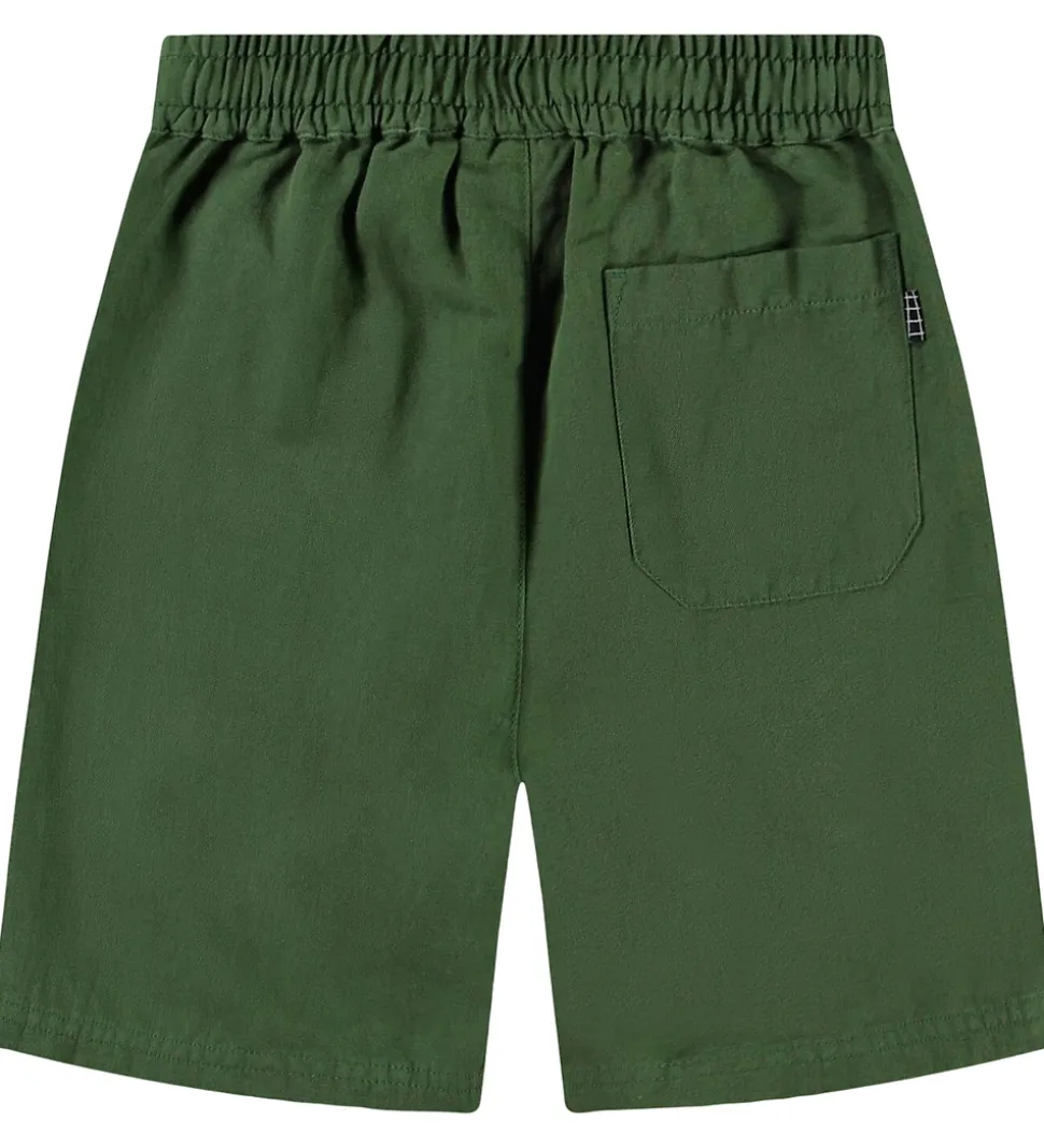 Stilfulde Molo shorts i en ensfarvet grøn nuance i en fastvævet kvalitet. Molo shortsene har en bred elastikkant i livet, som kan strammes ind med en snøre fortil. I siderne er der praktiske lommer, og bagpå i højre side sidder der en flot lomme.