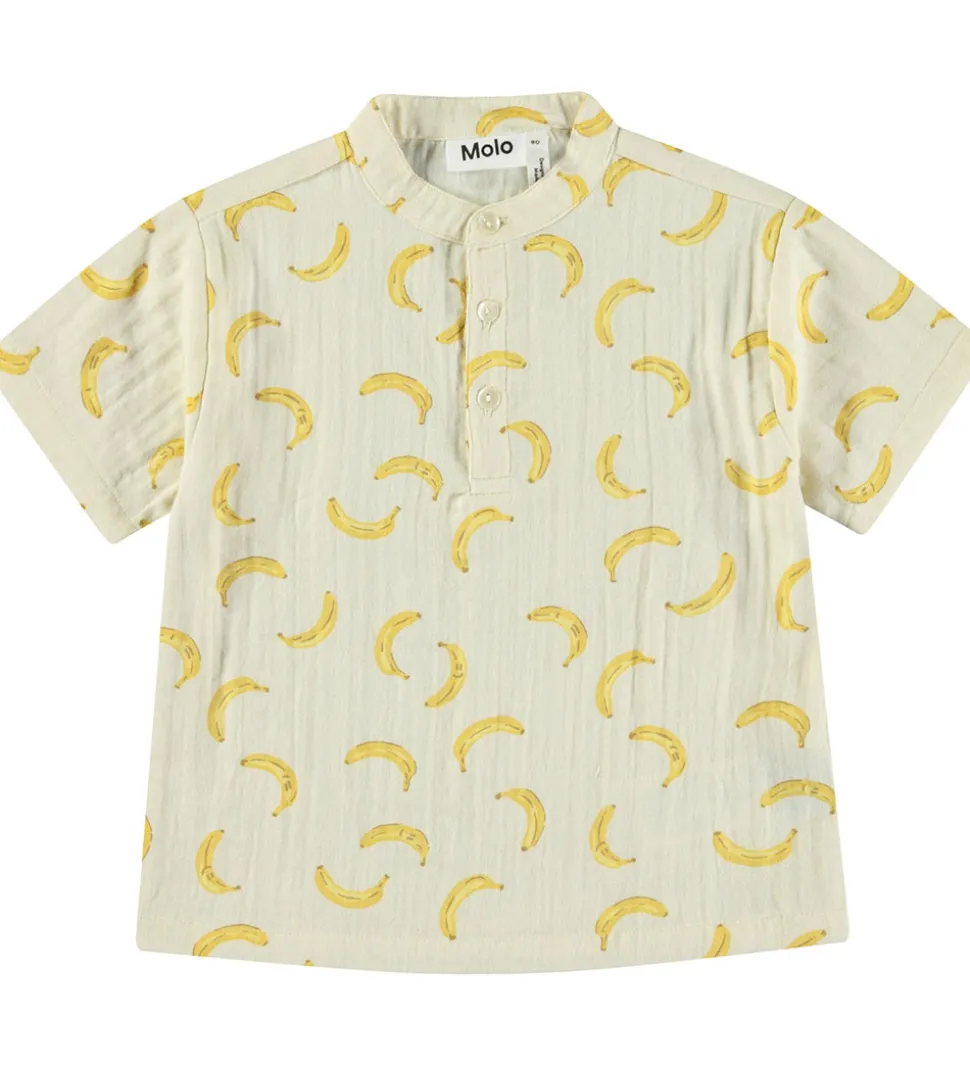 Skøn Molo skjorte i lys beige med et skønt allover bananprint.