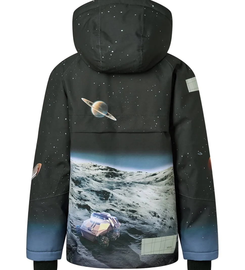 Flot Molo vinterjakke med fantastisk motiv af en astronaut på månen. Vinterjakken har en gummi-logoapplikation på venstre bryst samt logoreflekser og reflekspipings.