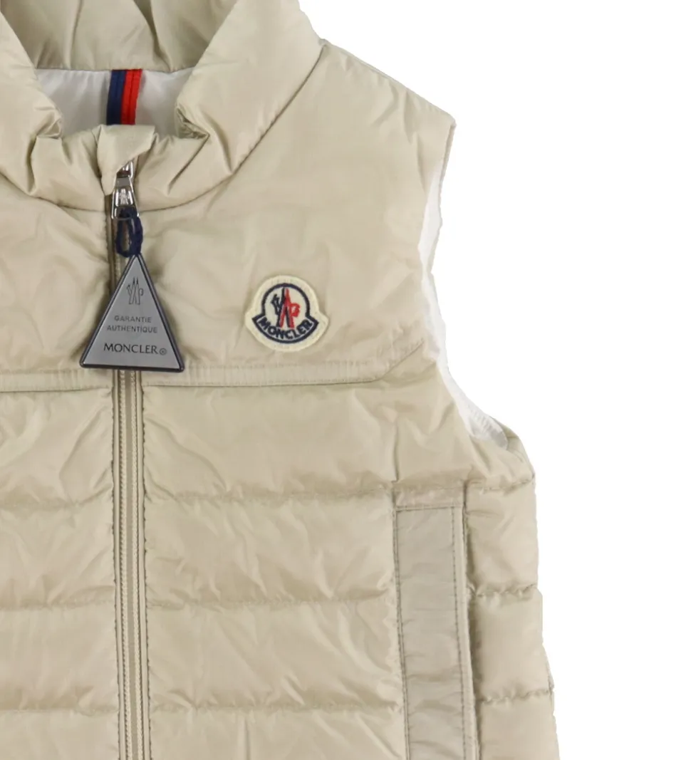 Lækker Moncler dunvest i lys beige.