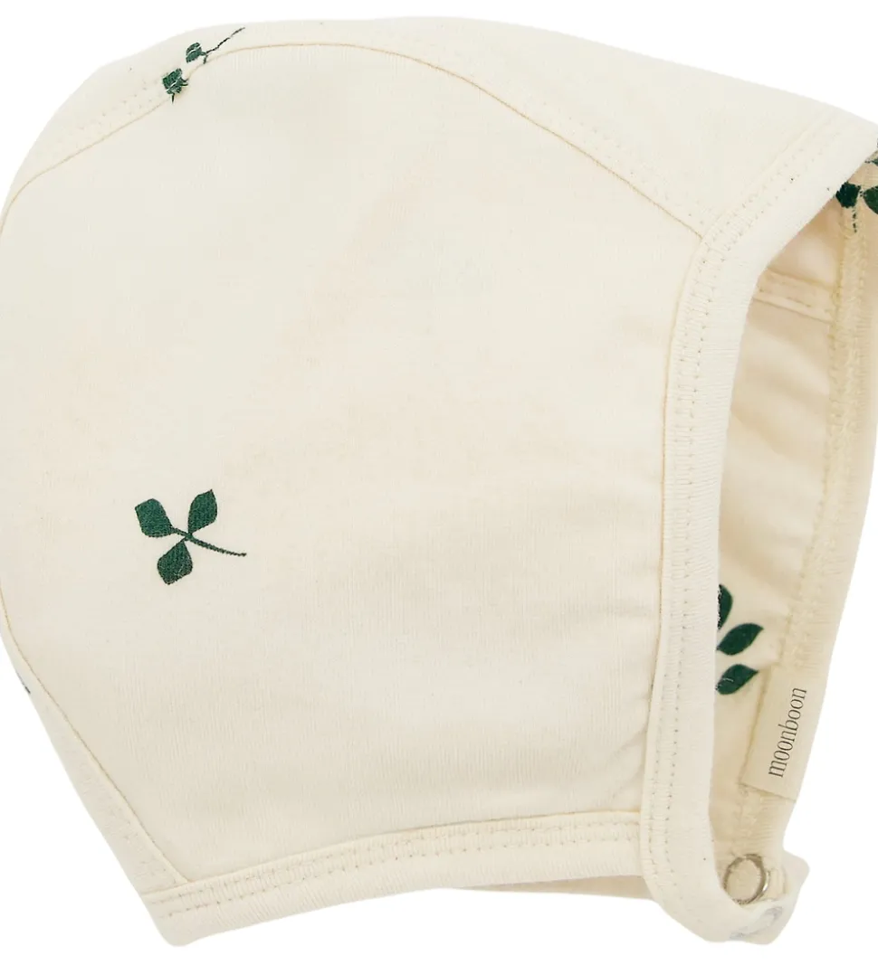 Dejlig Moonboon natdragt med babyhjelm i cremehvid med alloverprint af mørkegrønne bladgrene. Moonboon natdragten med babyhjelm leveres i en fin gaveæske og er lavet i samarbejde med H.C. Andersens Hus.