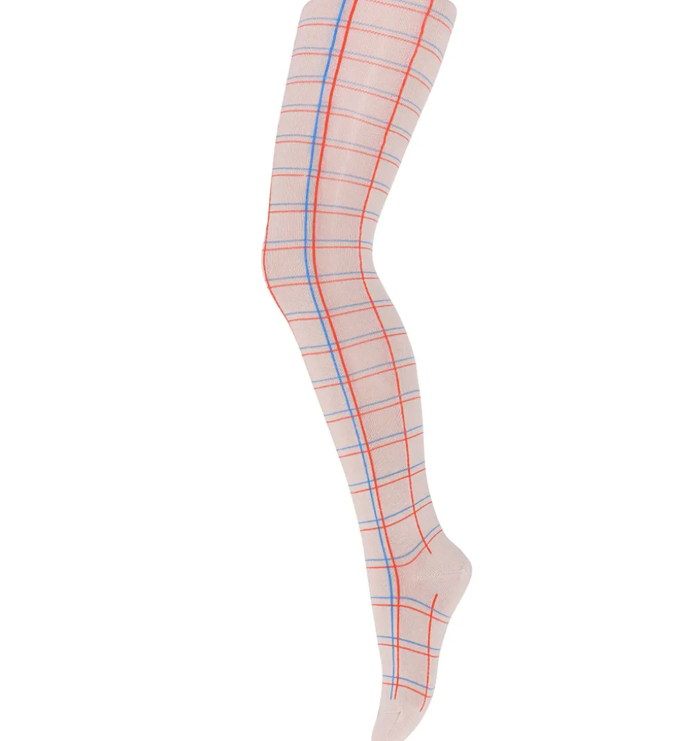 Smarte MP strømpebukser i rosa, med tern i rød og blå over det hele.