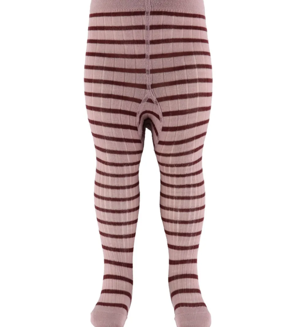 Klassiske MP strømpebukser i rosa med bordeaux striber og ribstruktur. De har en elastisk talje, der sikrer en god pasform.