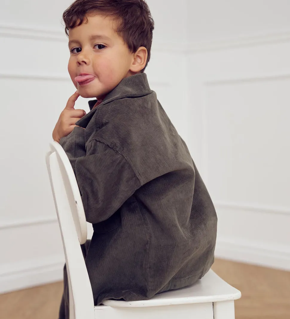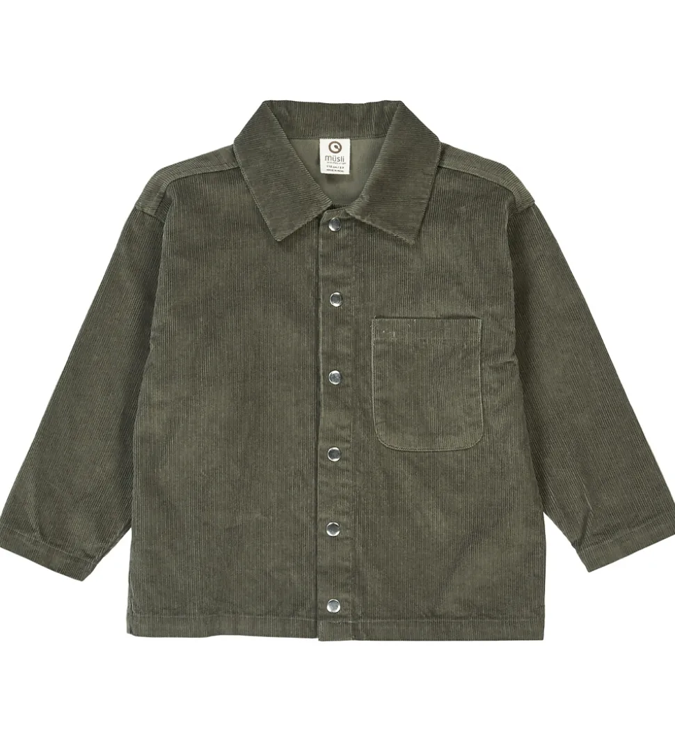 Flot Müsli skjorte i en afdæmpet grønt fløjl i en fastvævet kvalitet.