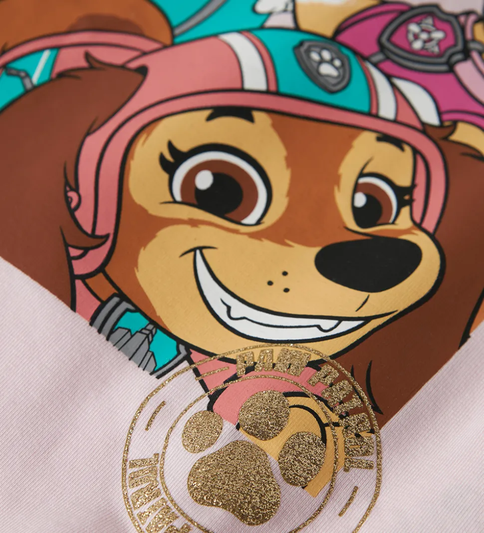 Blusen har et stort tryk af tre glade hundefigurer fra Paw Patrol, der tilføjer et sjovt element. Den kommer med en rund halsudskæring og let puffede ærmer, hvilket giver et stilfuldt look. Name It sikrer et sødt design, der vil glæde mange børn.