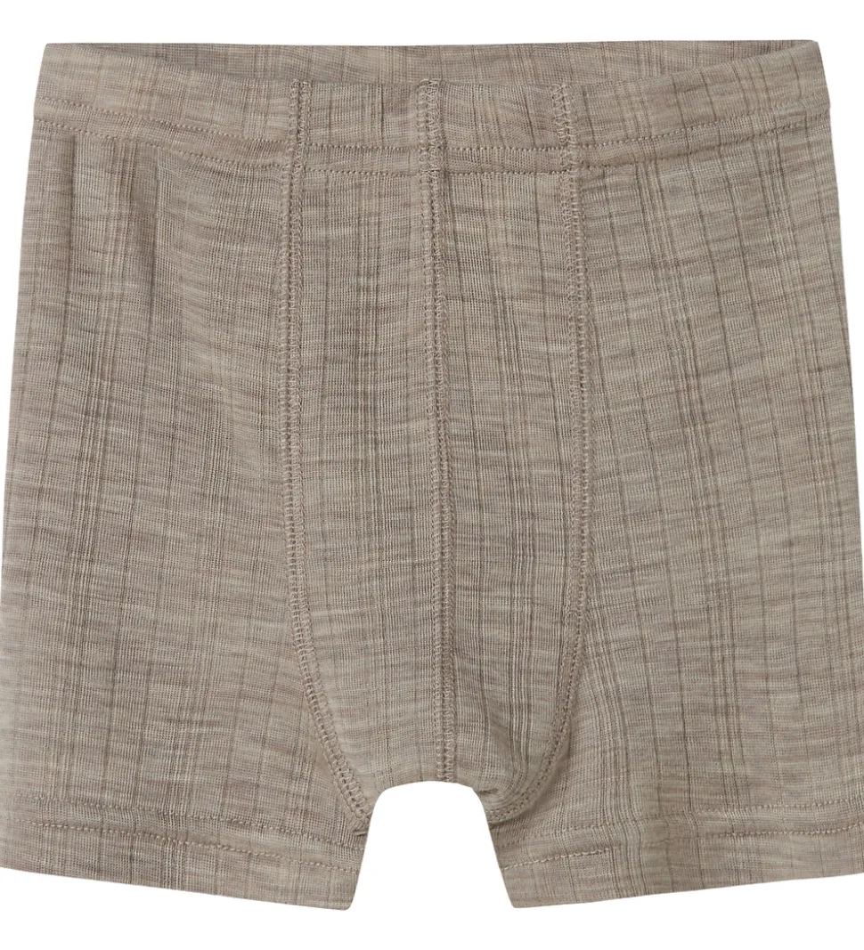 Skønne Name It boxershorts i grå med fin ribstruktur. Boxershortsene har en god elastik i taljen, som sikrer en behagelig pasform. De er fremstillet i blødt og åndbart merinould.