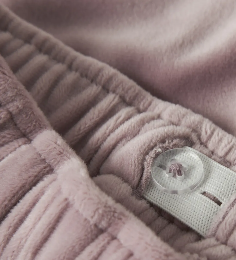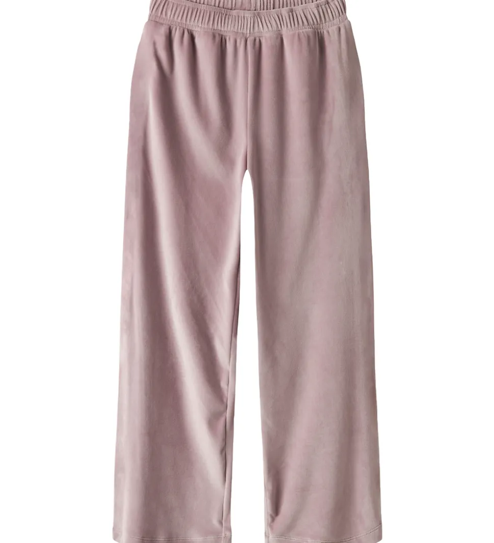 Flotte velourbukser fra Name It i rosa. Bukserne har en god elastik i taljen, som kan justeres med knapper indvendigt. De har en afslappet pasform med lige ben.