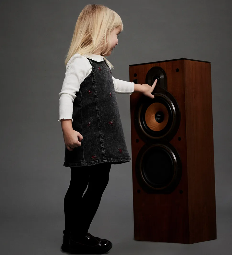Elegant Name It denimkjole i mørkegrå med vasket look og små, broderede blomster i mørkerød og lilla. Denimkjolen har brede skulderstropper, og en rund halsudskæring. Kjolen lukkes med knapper i nakken. Den har et lige snit, og egner sig til både hverdag og festlige lejligheder.