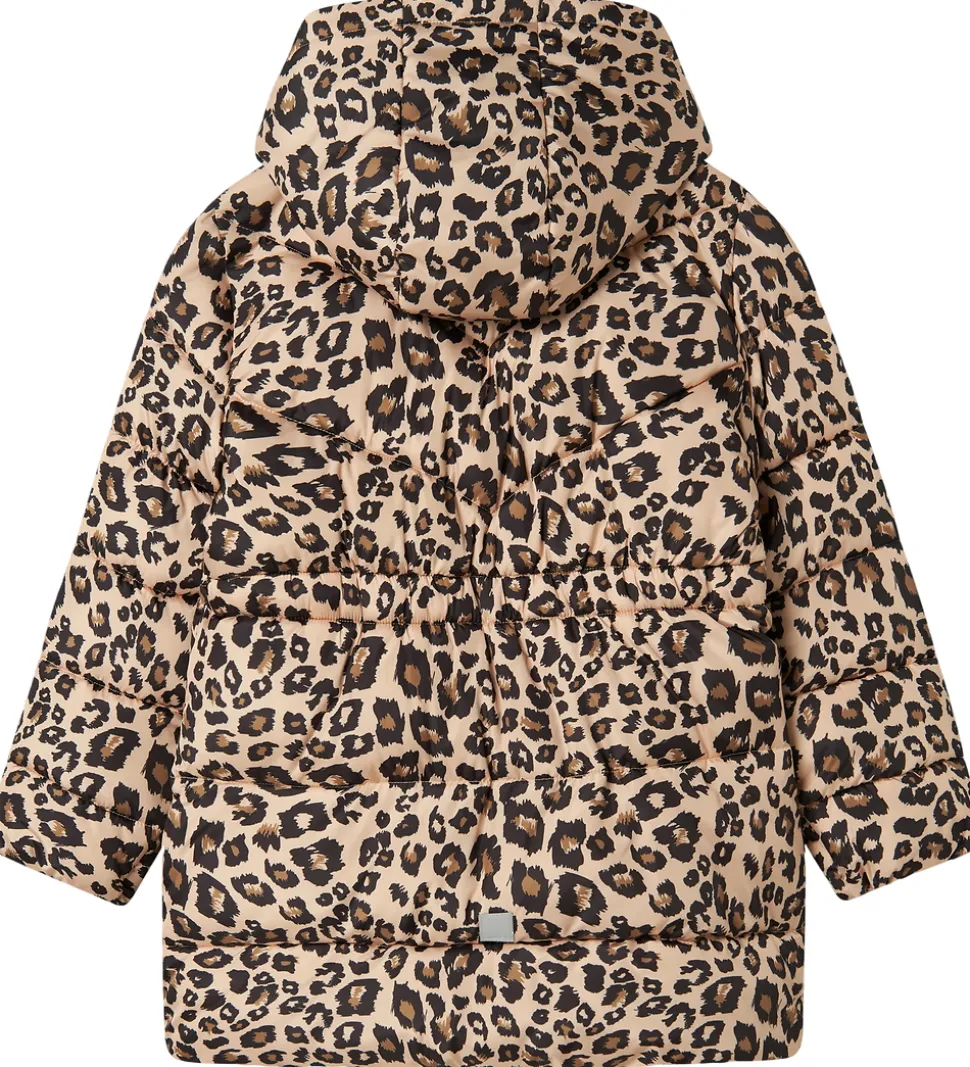Flot Name It dynejakke i leopardprint med vandrette syninger og velplacerede reflekser.