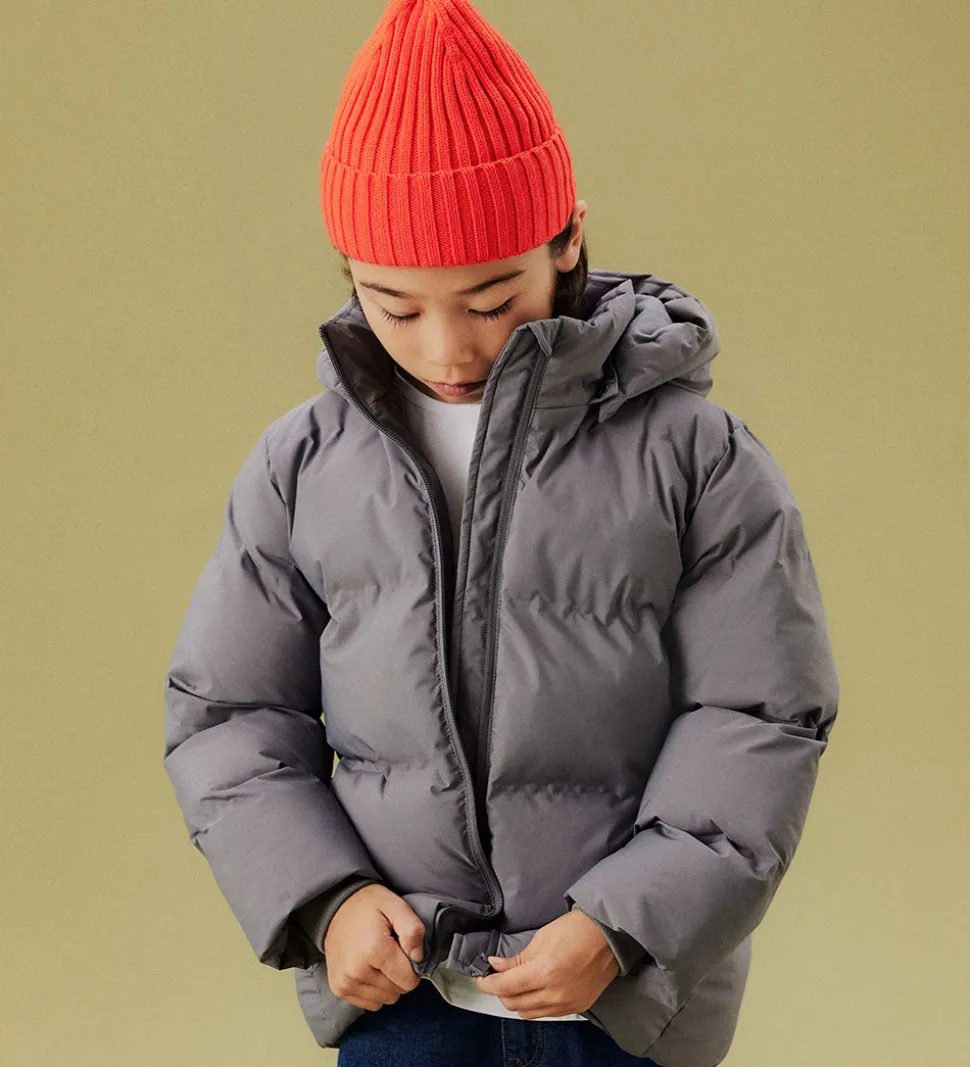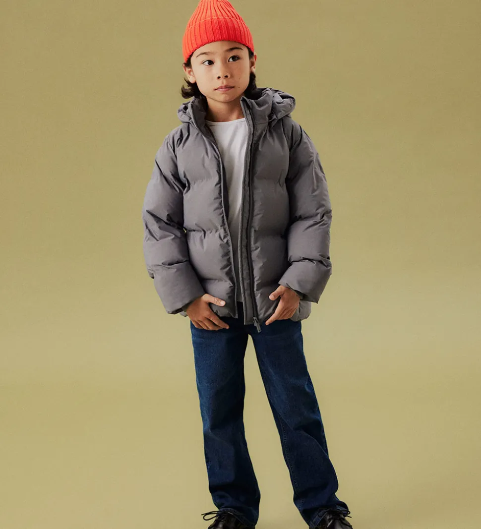 Name It dynejakke har en aftagelig hætte med en høj hals og åbnes fortil med lynlås. De lange ærmer har snefang og brede ribkanter, der holder vejr og vind ude. Forlommerne er rummelige og og har trykknapslukning. I livåbningen har dynejakken en skjult elastikkant.