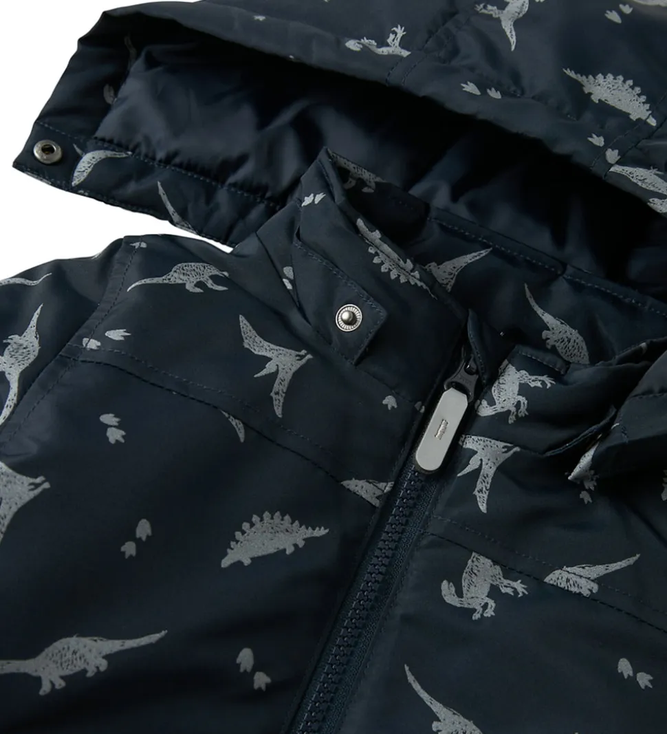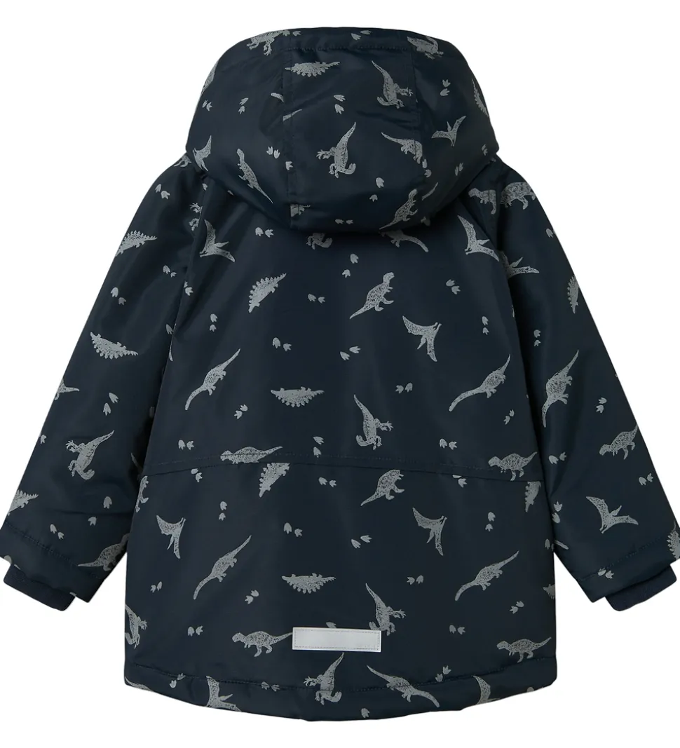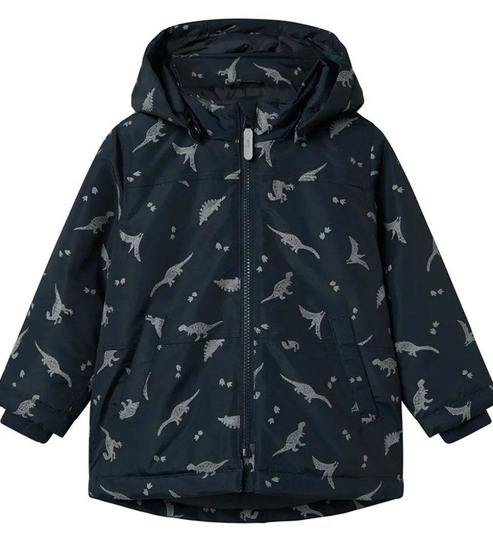 Sej Name It vinterjakke i navyblå med et sejt refleks-dinoprint.