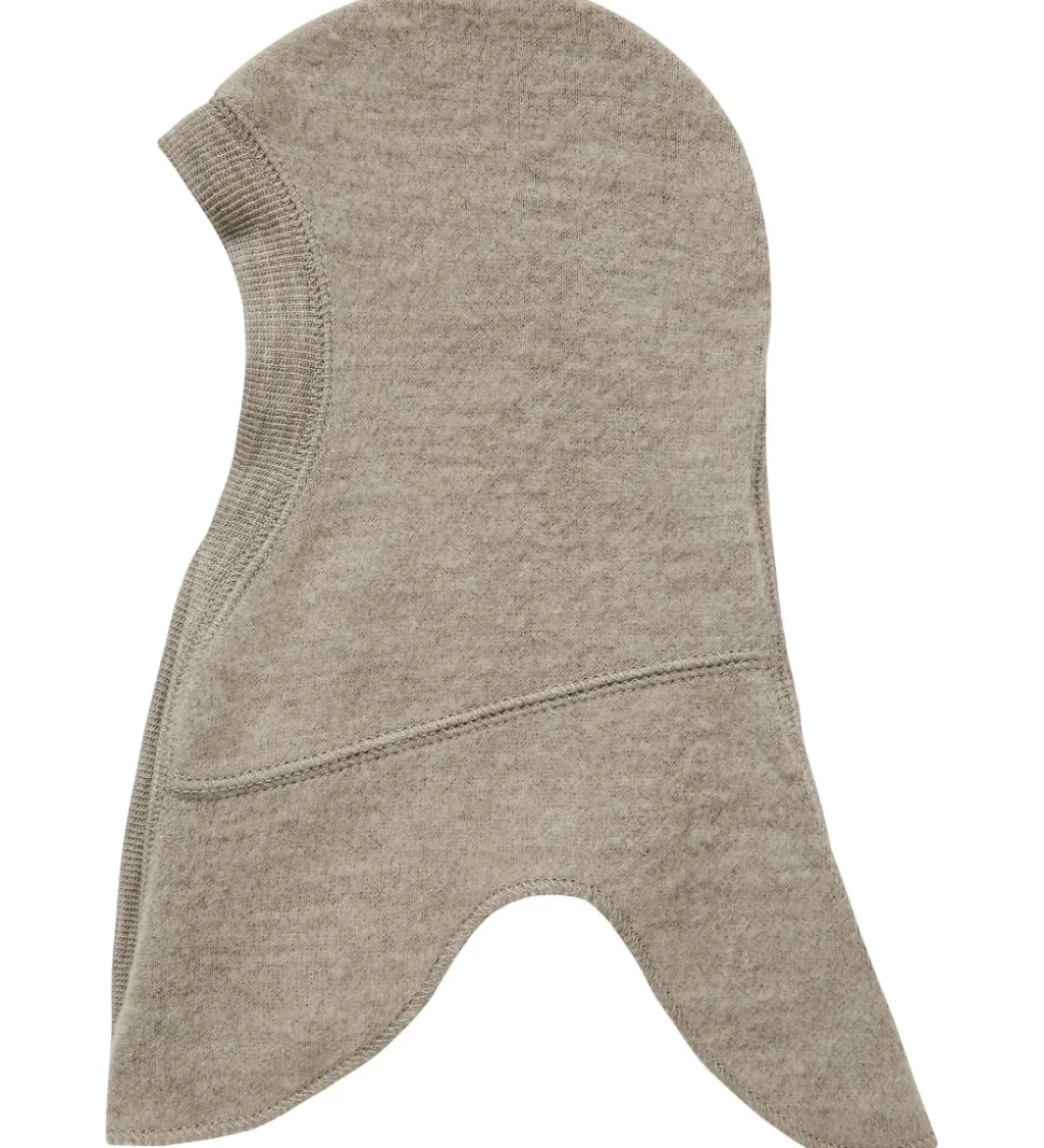 Name It elefanthuen har en rund hovedform med en bred ribkant i ansigtsåbningen. Under hagen er der gennemgående trykknapper, så elefanthuen er nem at få af og på. Elefanthuen består af ét lag lækkert fleece i merinould.