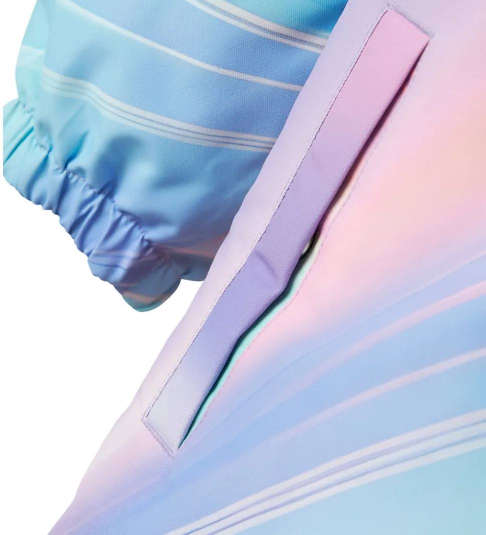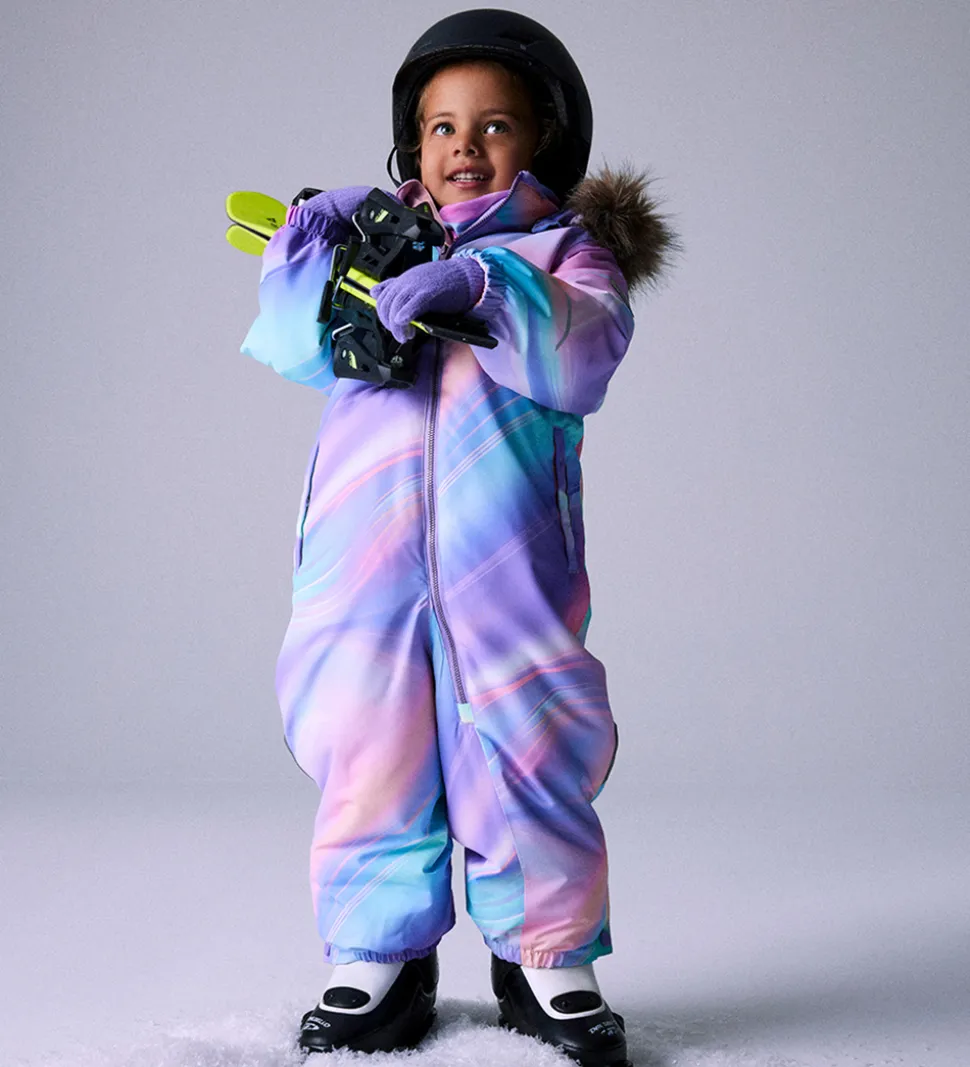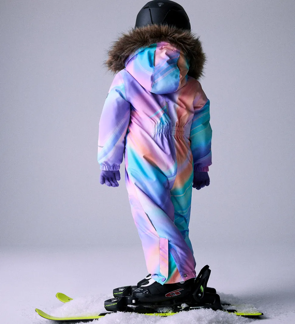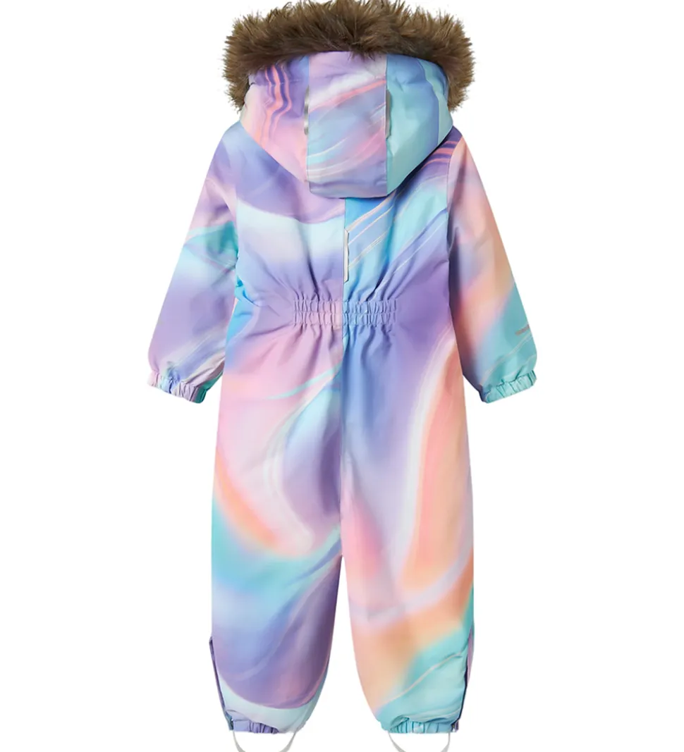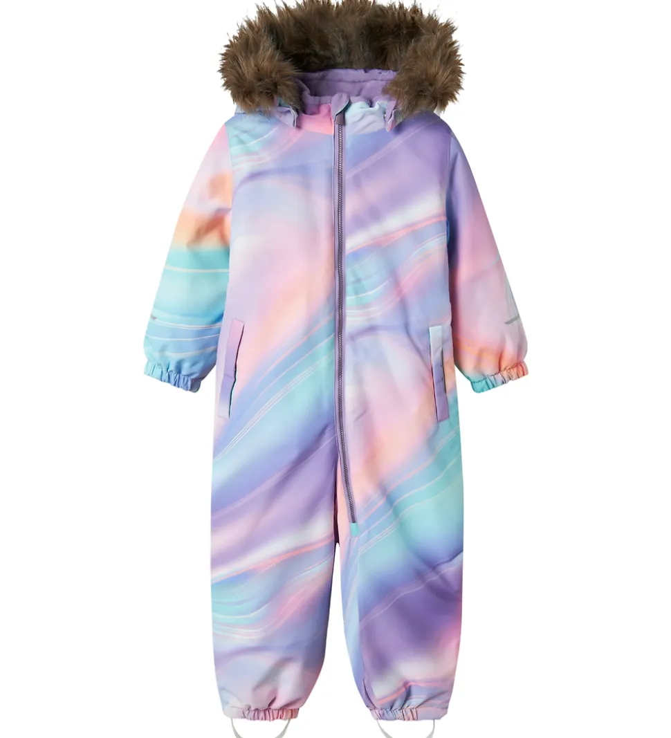 Farverig Name It flyverdragt i multifarvet mønster med praktiske refleksdetaljer.