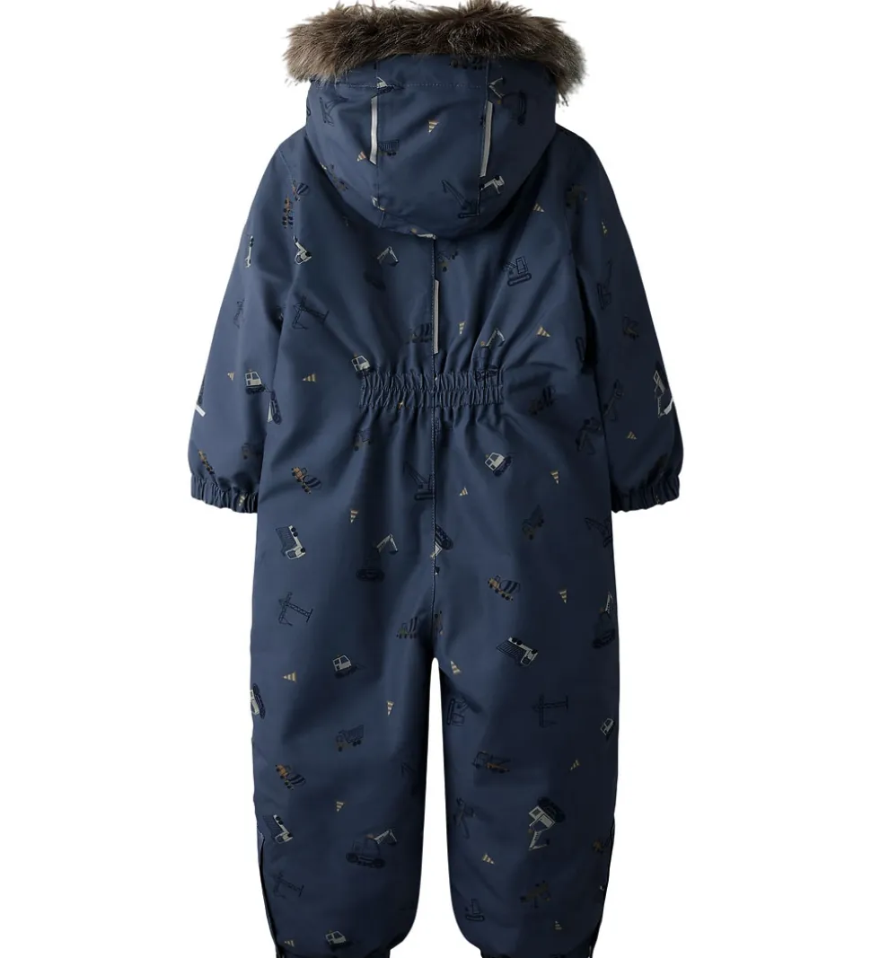 Fed Name It flyverdragt i mørkeblå med et alloverprint af arbejdsmaskiner.