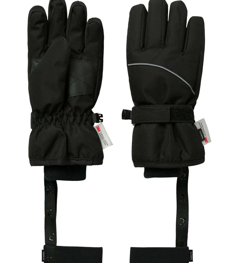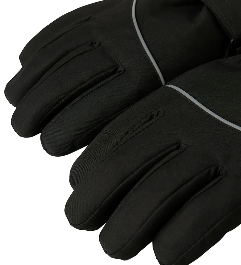 Lækre Name It handsker i sort med en reflekspiping på håndryggen.