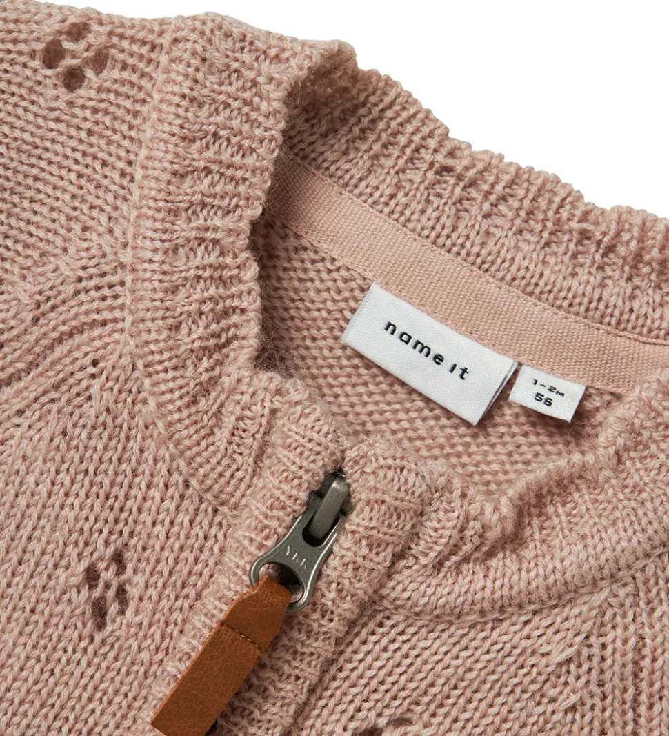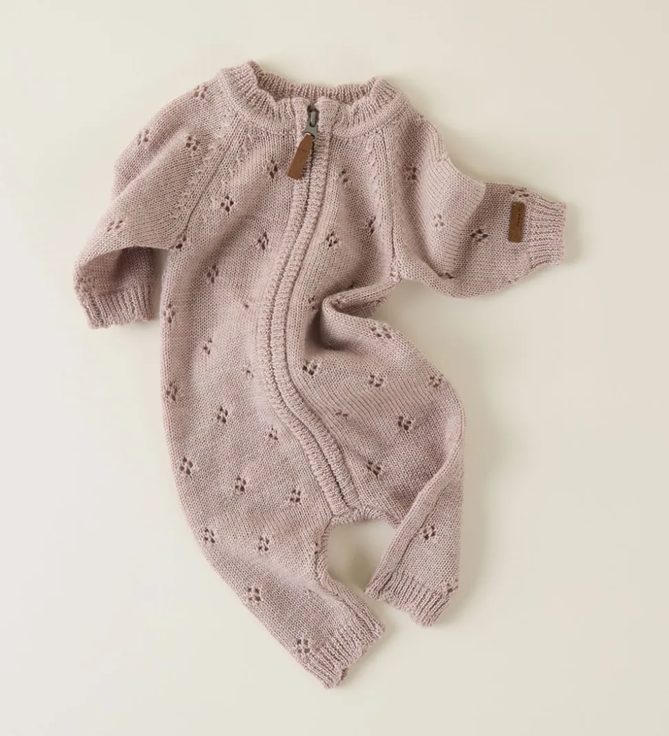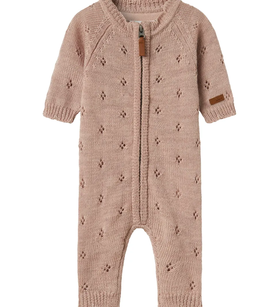 Flot Name It heldragt i ensfarvet brun med et smukt strikket mønster.