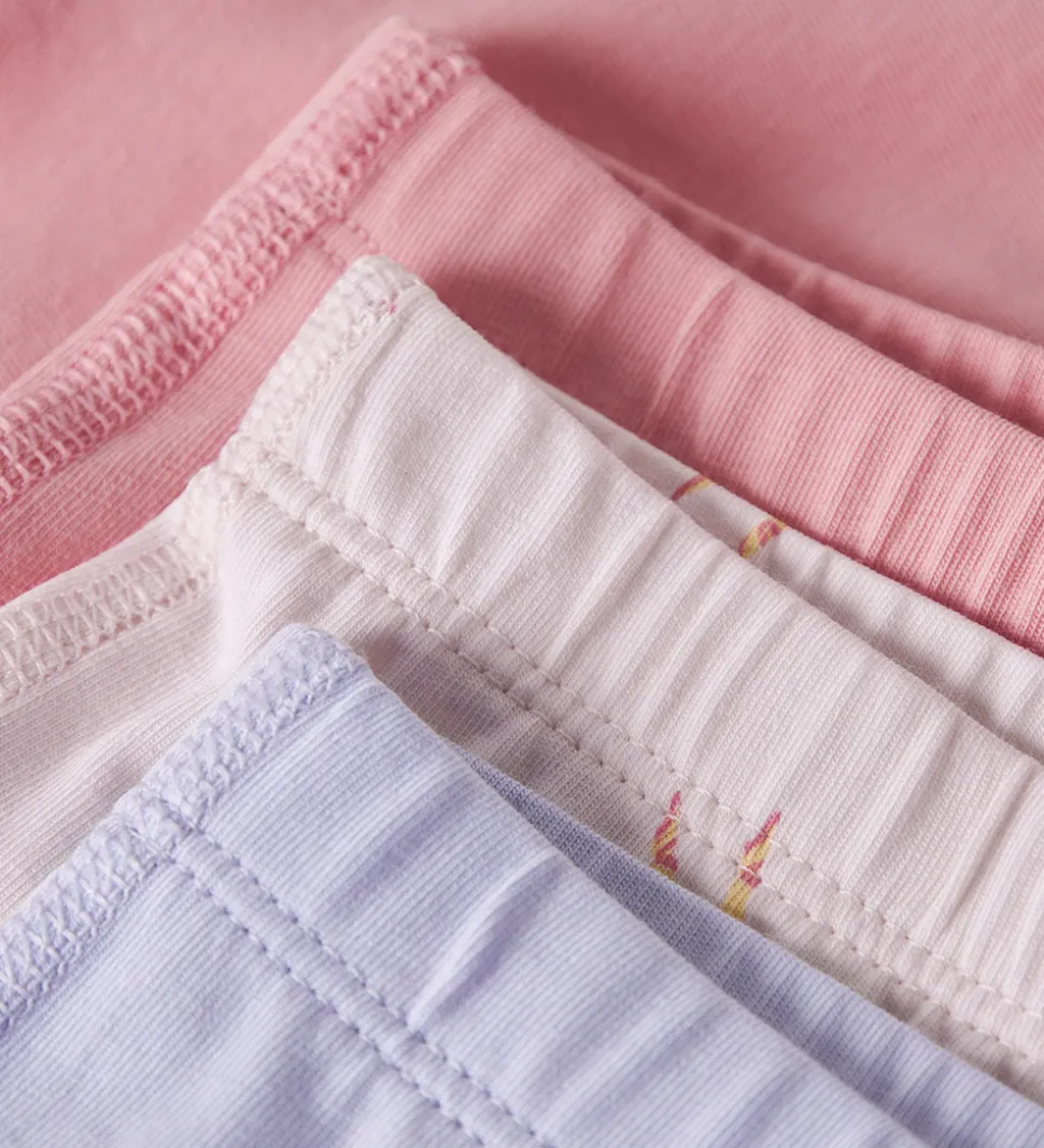 Name It hipstersene inkluderer et par i lyserød, et par i lyselilla, og et par med et sødt ballerina-print på en beige baggrund. Alle hipsters har en elastikkant i livet, der sikrer en god pasform og bevægelighed.