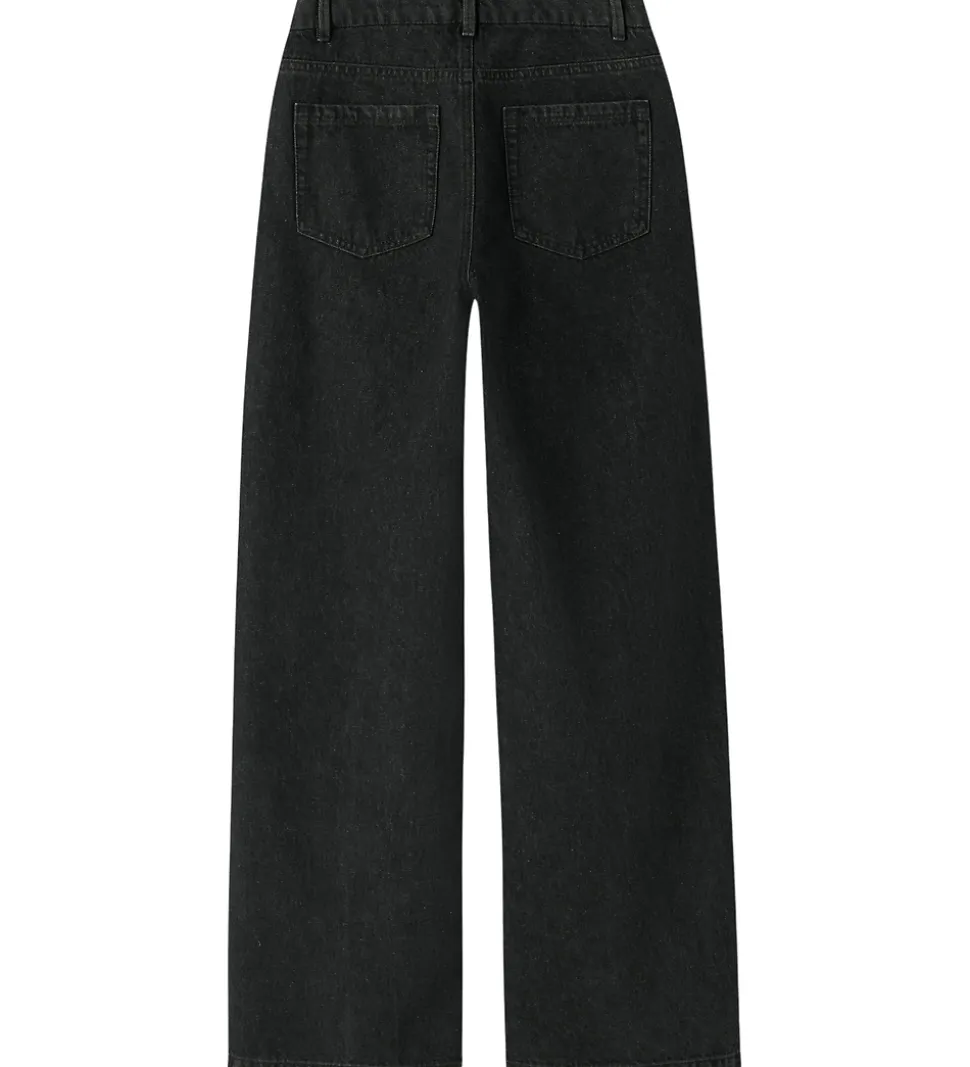Stilfulde Name It jeans i sortmeleret denim nuance med små, elegante sløjfer af similisten fortil. Name It jeansene har en klassisk lukning med knap og lynlås samt praktiske lommer foran. De har også indvendigt justerbare elastikker i buksekanten. Jeansene har en standard lommedesign og giver et moderne udtryk.