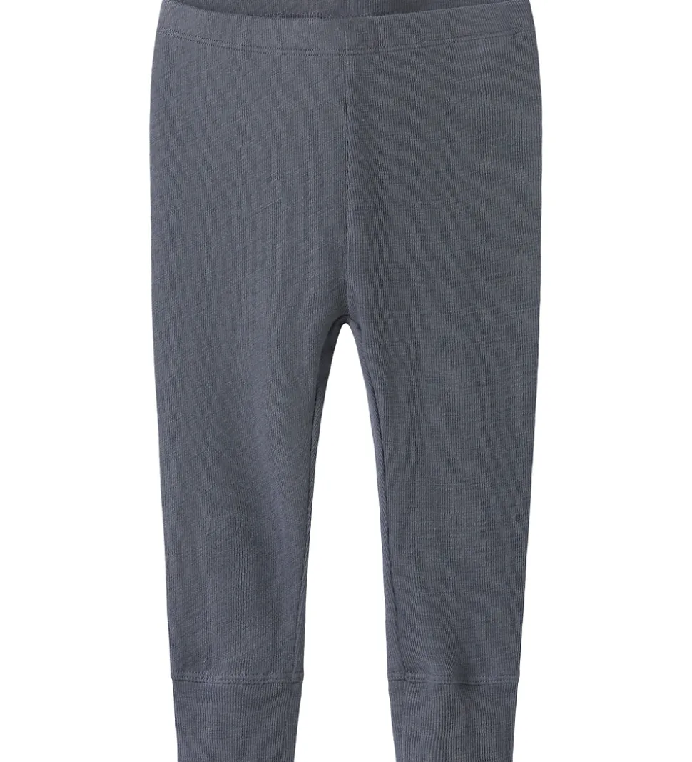 Stilfulde Name It leggings i en afdæmpet, gråblå nuance med en ribbet struktur. Name It leggingsene har en elastisk talje, som sikrer en god pasform.
